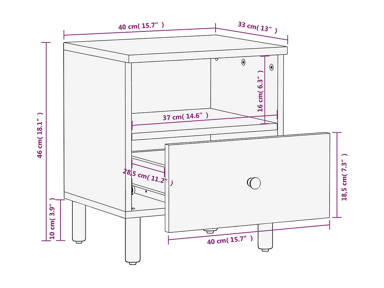 Nachtkastje 40x33x46 cm massief mangohout