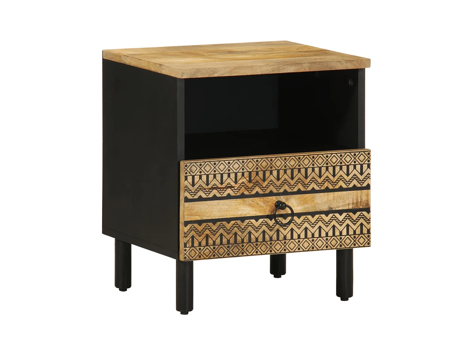 Nachtkastje 40x33x46 cm massief ruw mangohout zwart