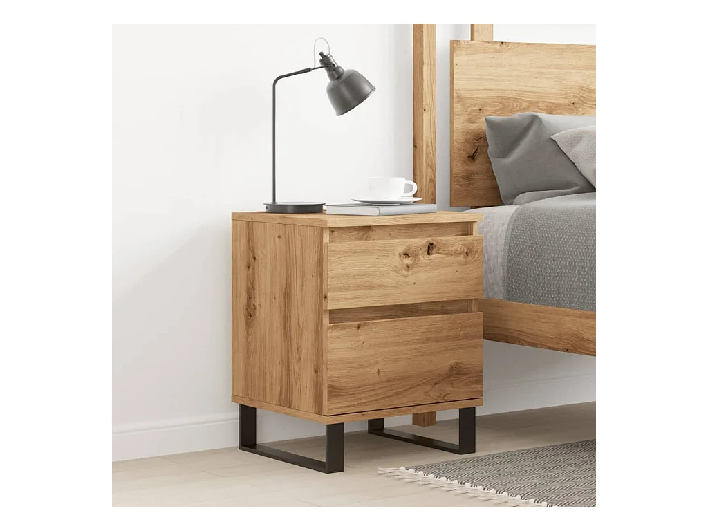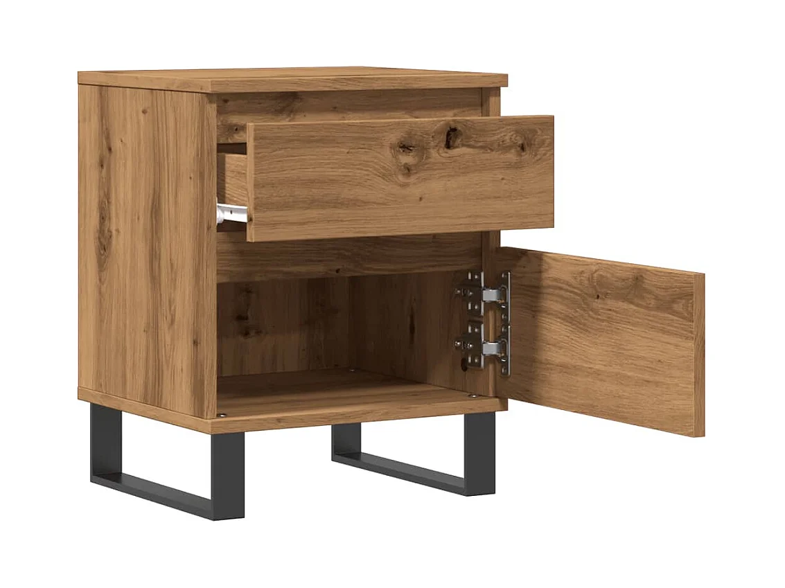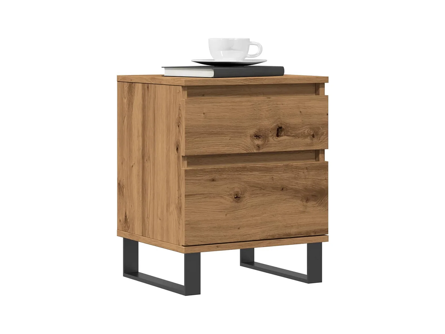 Nachtkastje 40x35x50 cm bewerkt hout artisanaal eikenkleur
