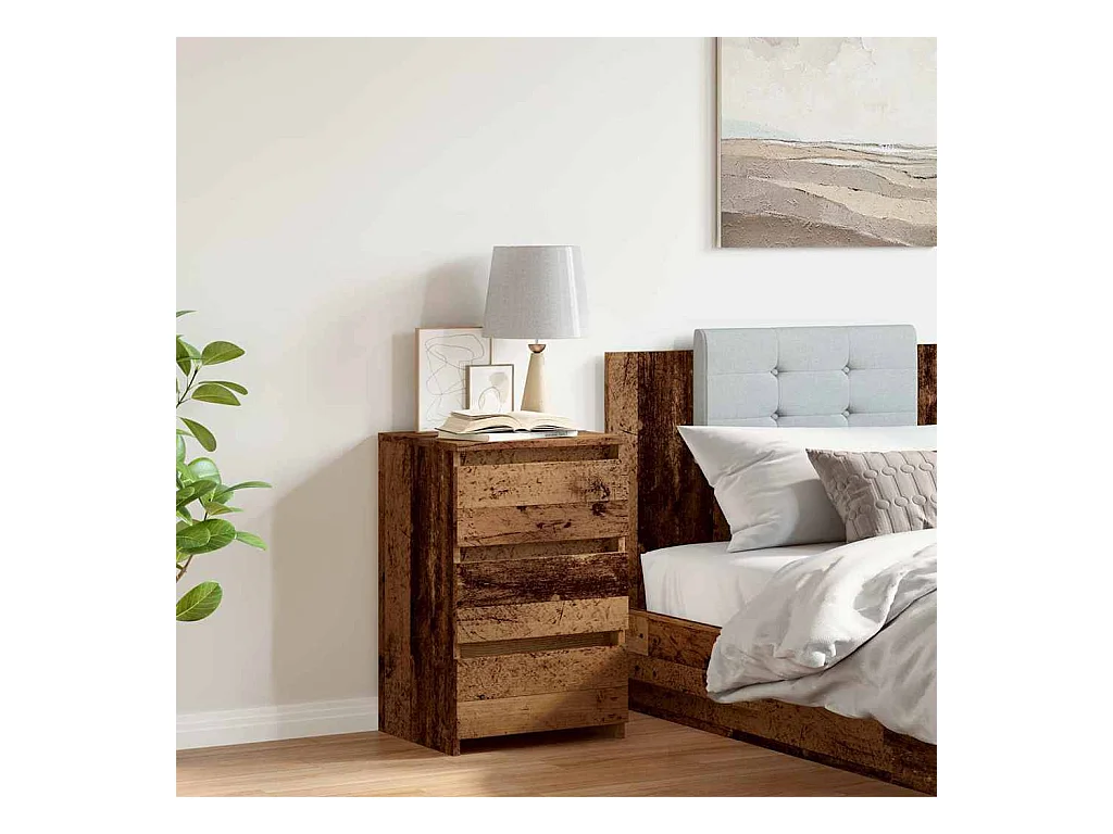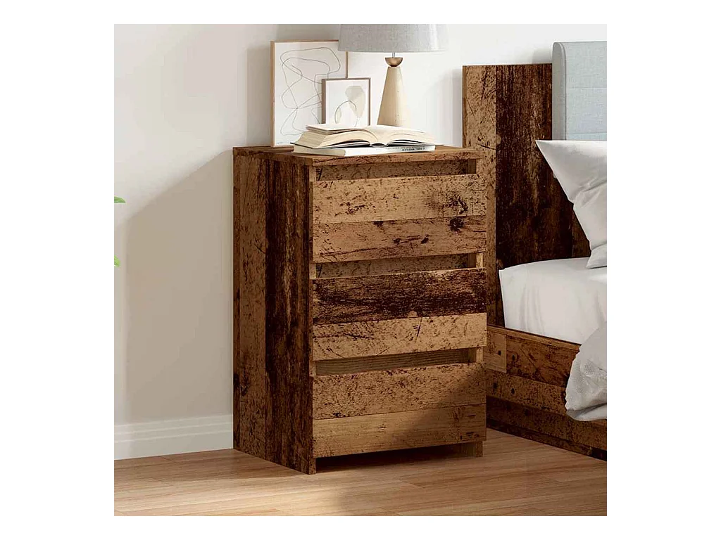 Nachtkastje 40x35x50 cm bewerkt hout oud houtkleurig