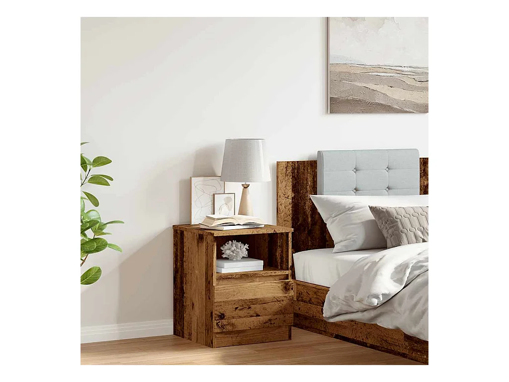 Nachtkastje 40x35x50 cm bewerkt hout oud houtkleurig