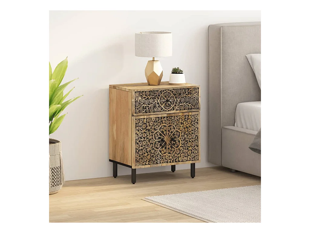 Nachtkastje 50x33x60 cm massief mangohout BE343690