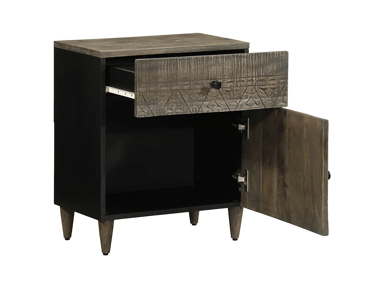 Nachtkastje 50x33x60 cm massief mangohout lichtgrijs