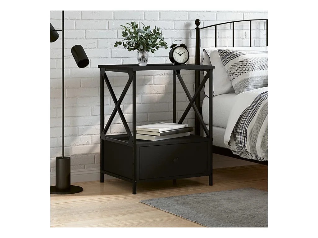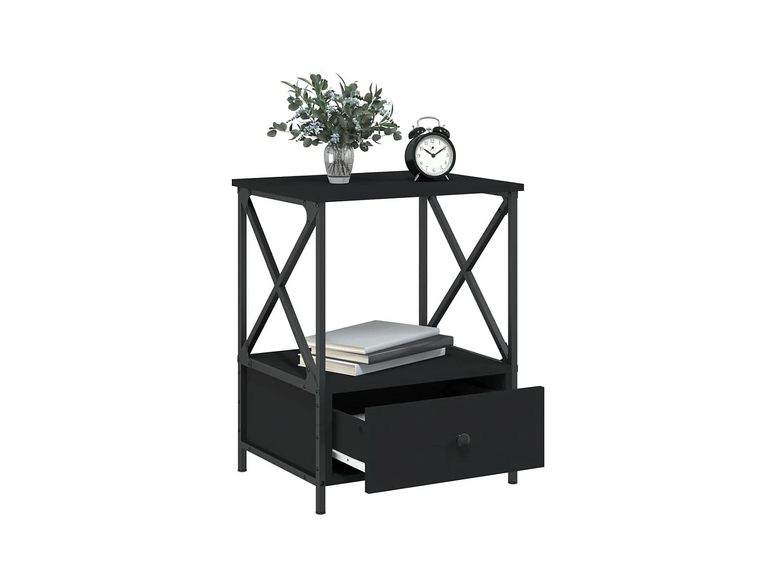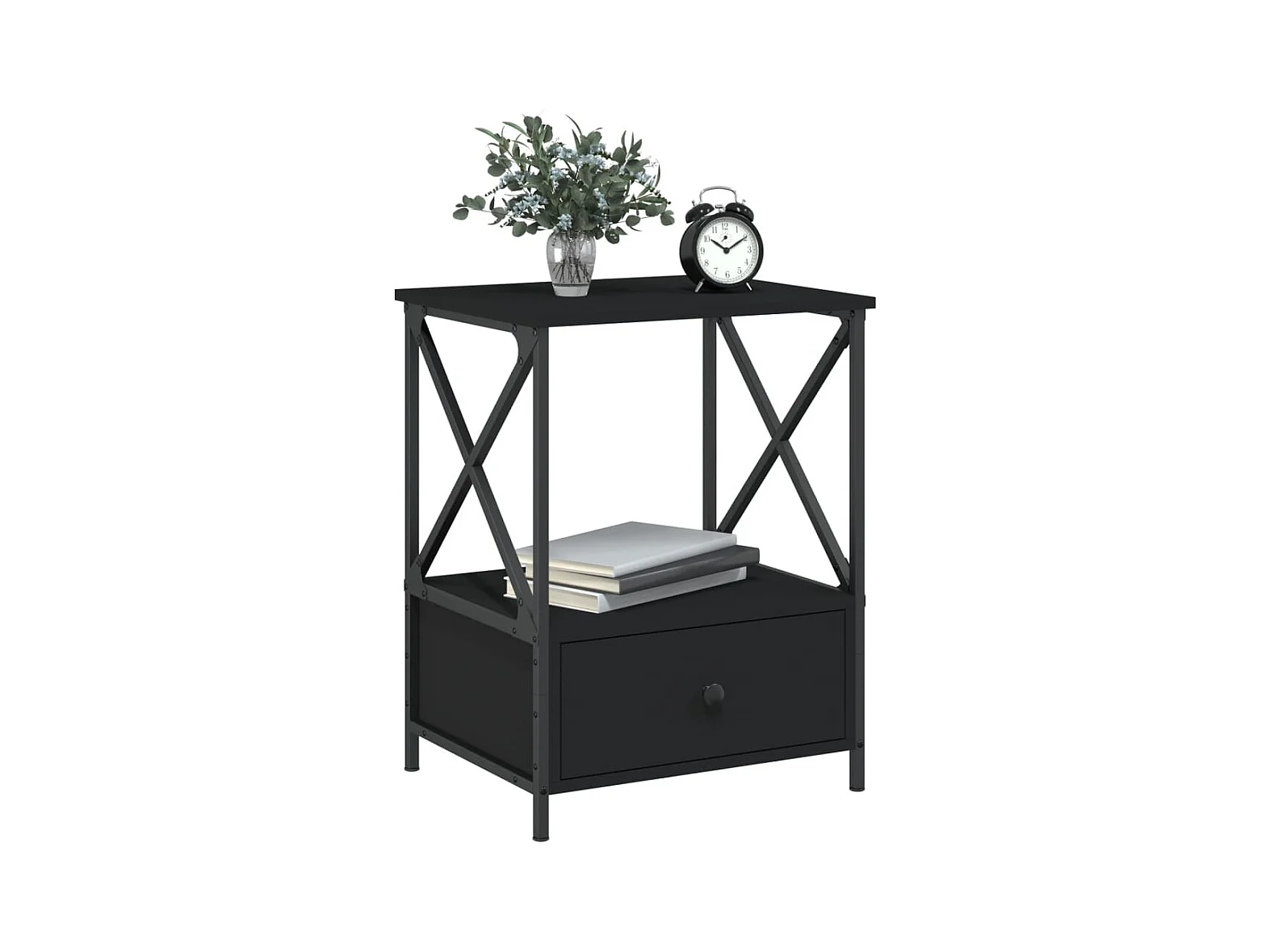 Nachtkastje 50x41x65 cm bewerkt hout zwart NL50214