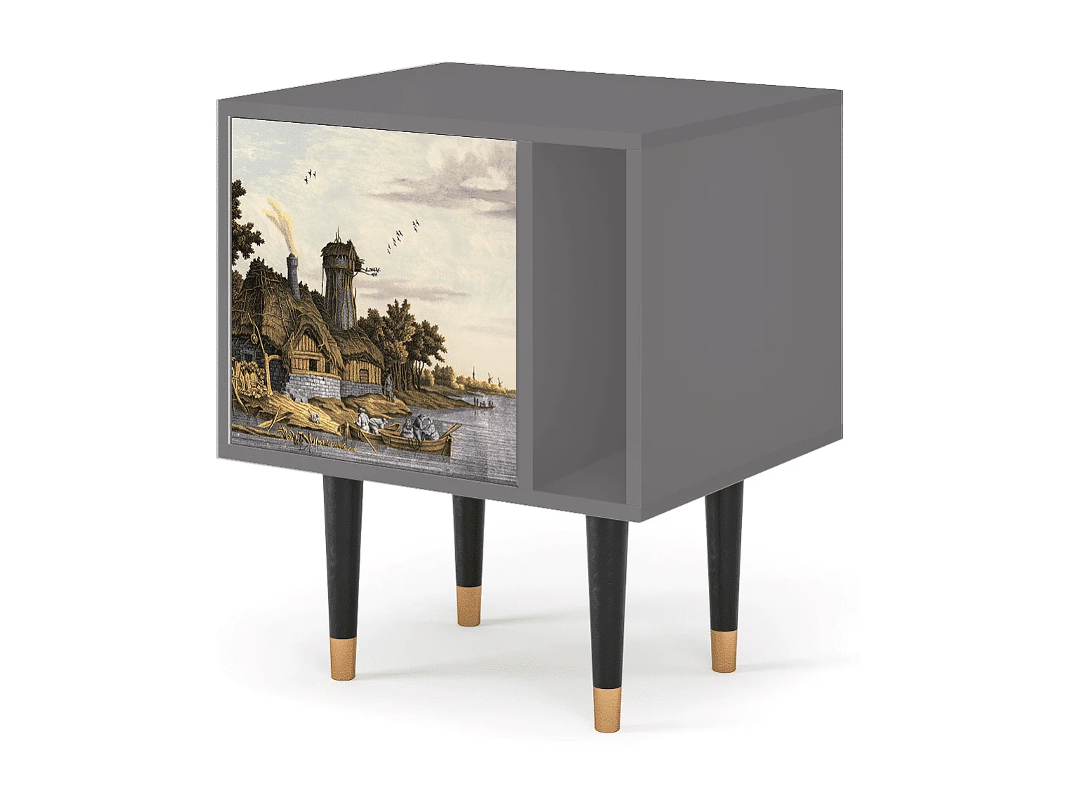 Nachtkastje - 57х69х48 cm - S2 - Mill along a River, Grijs