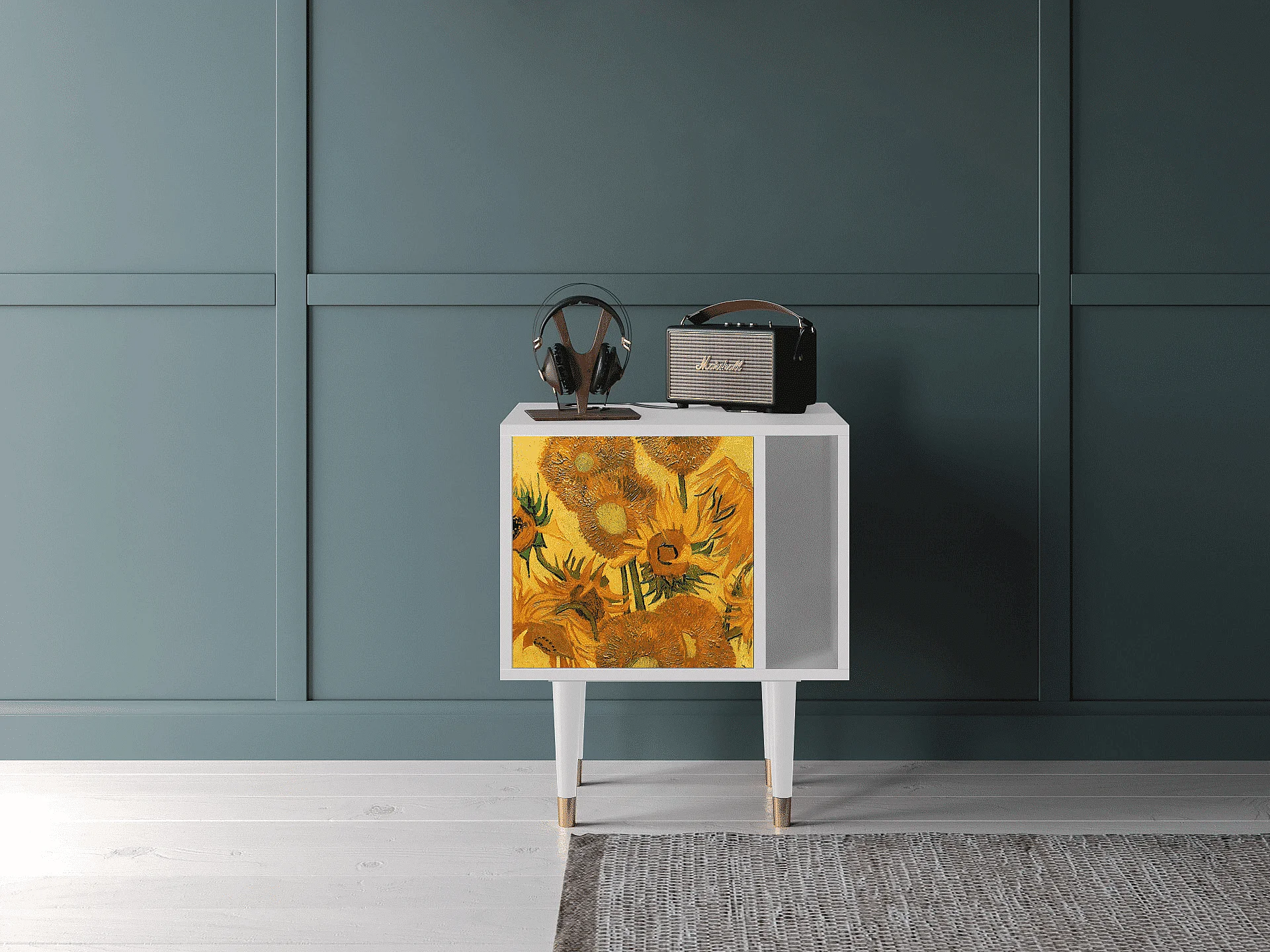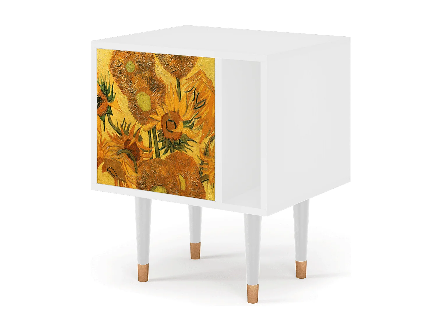 Nachtkastje - 57х69х48 cm - S2 - Sunflowers, Wit