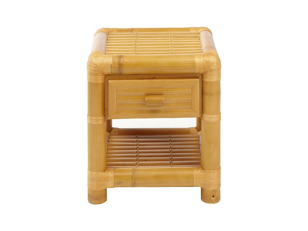 Het nachtkastje MALINDI ruikt naar tropische stranden, met zijn structuur van bamboe en zijn afwerking van rotan.