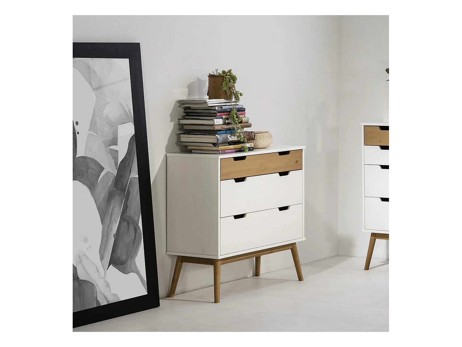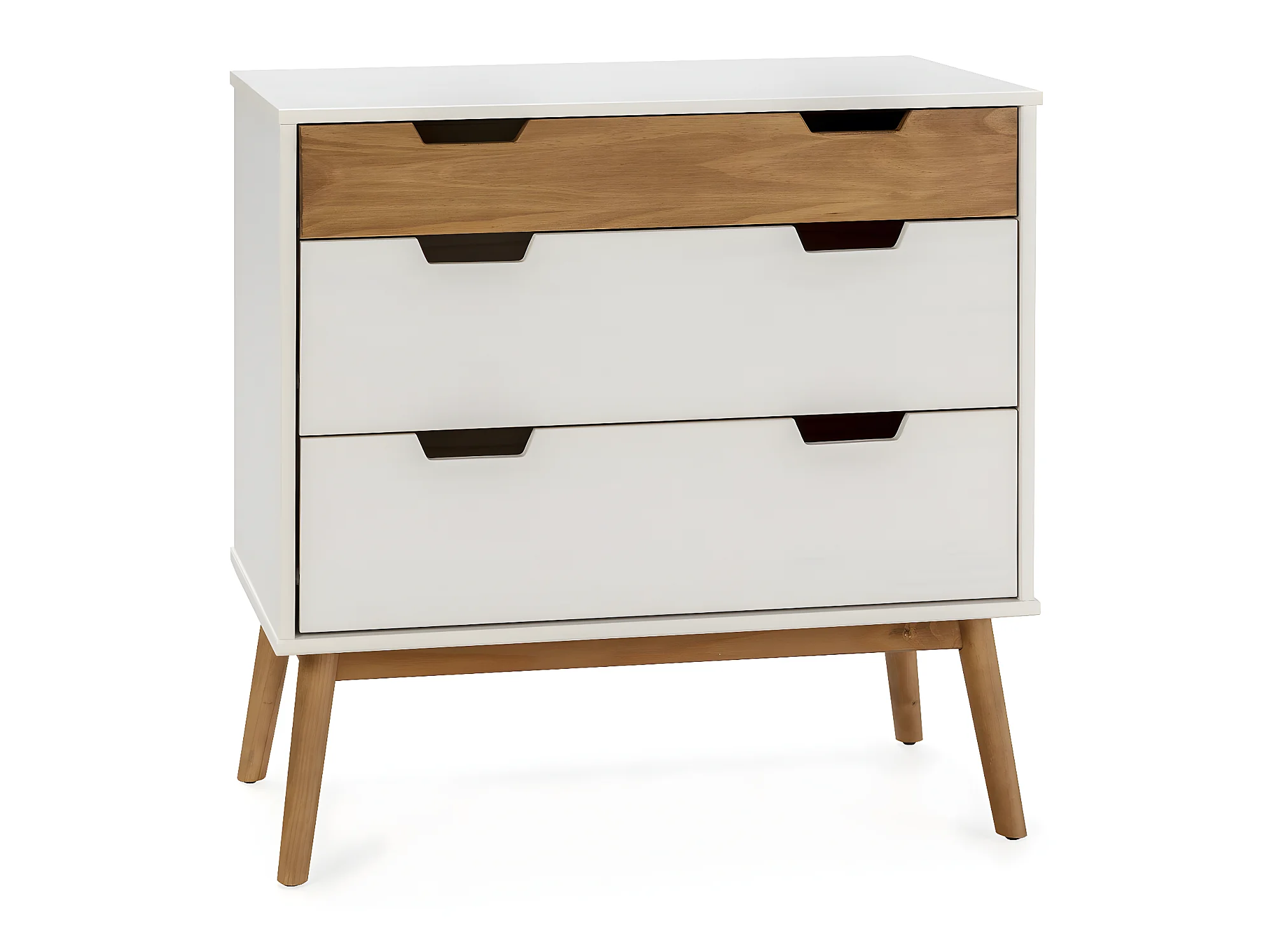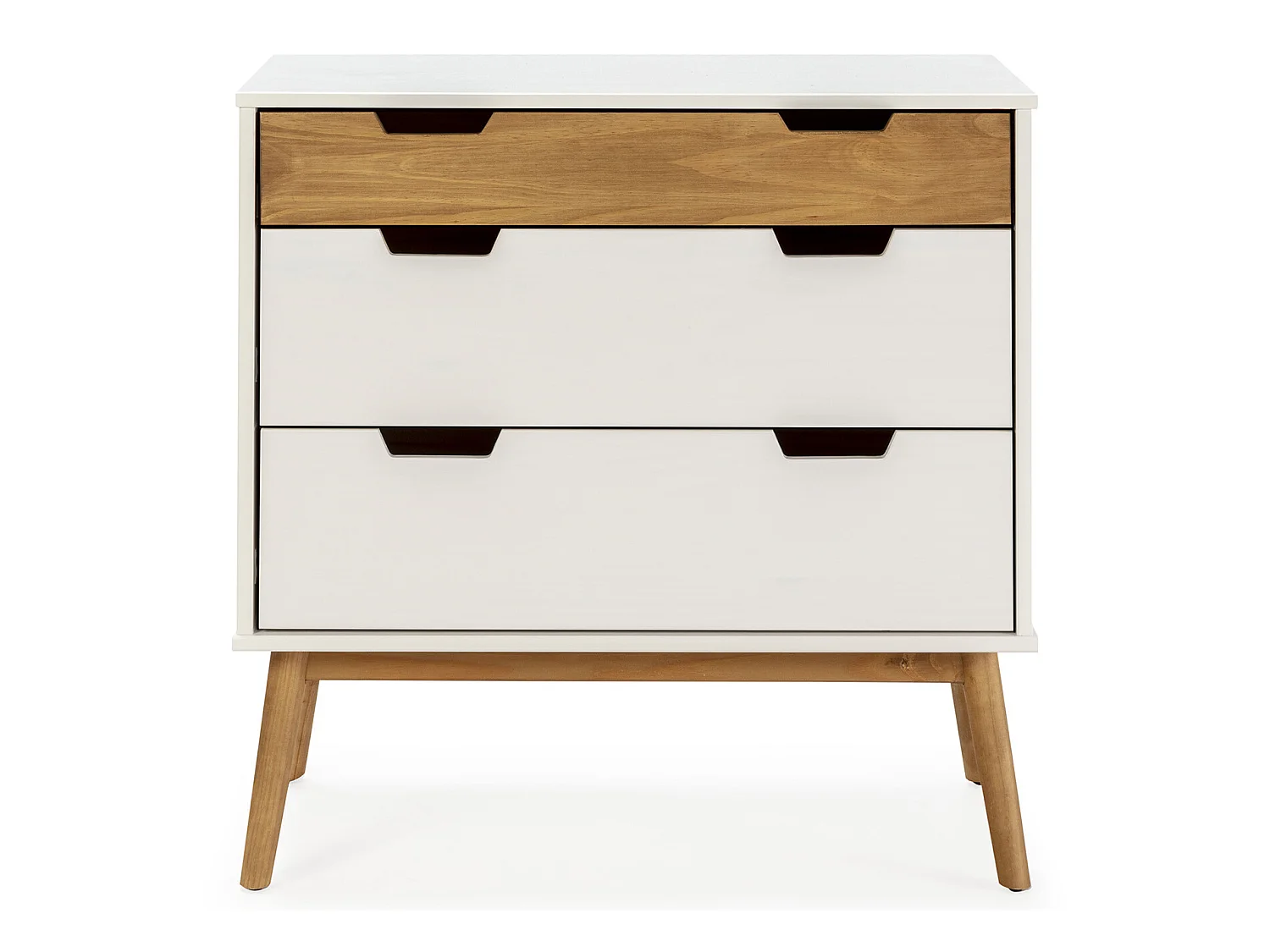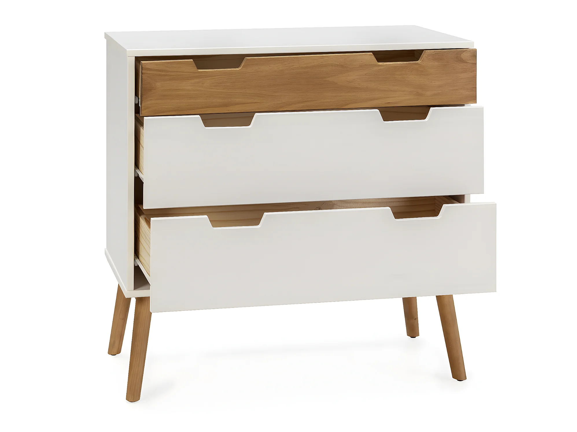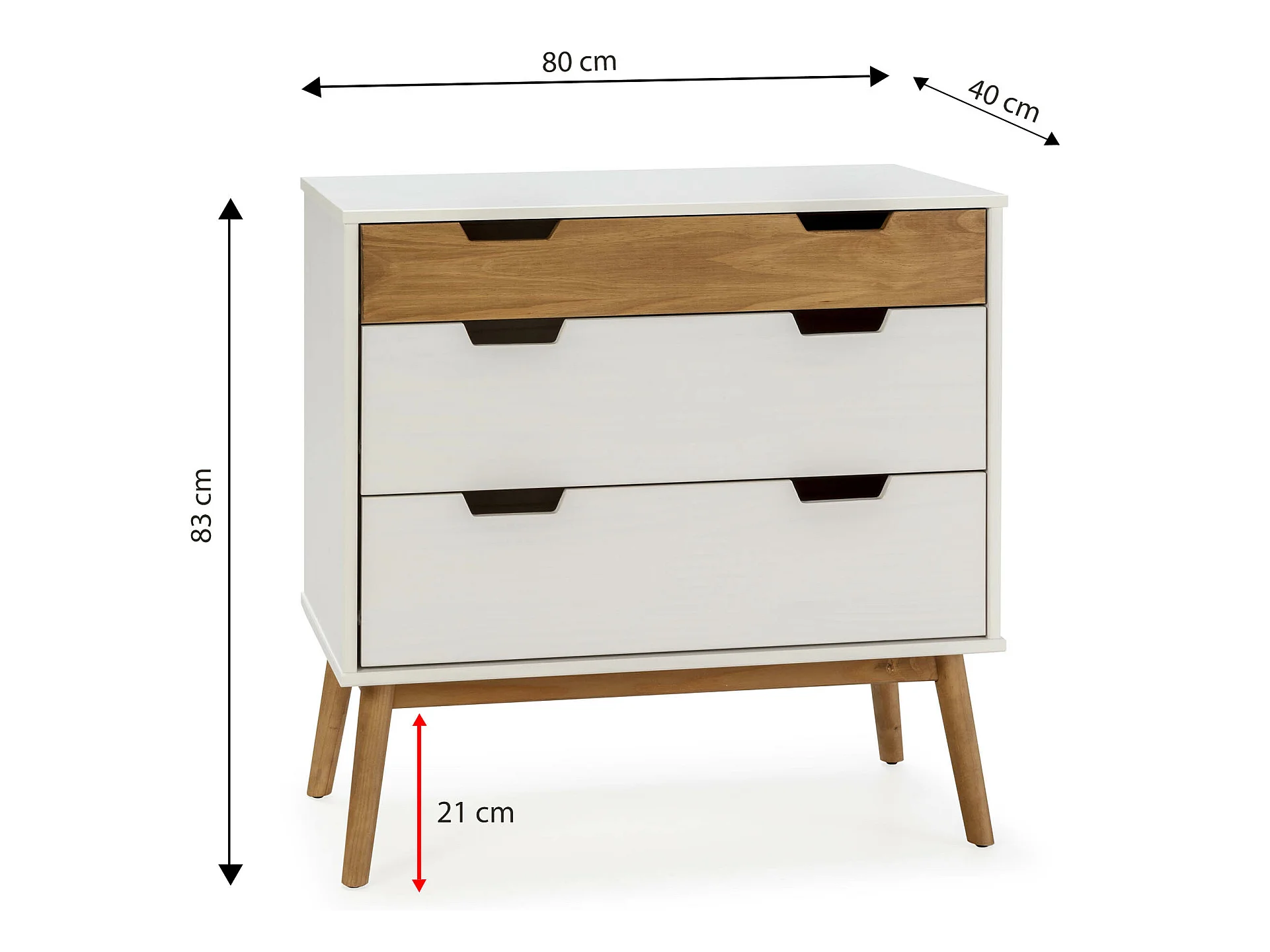 Nachtkastje Baku met 3 laden in wit/was kleur, 80 cm breed.