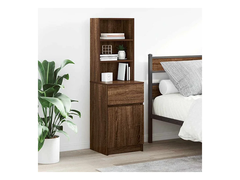 Nachtkastje bruin eiken 39x35x125 cm bewerkt hout