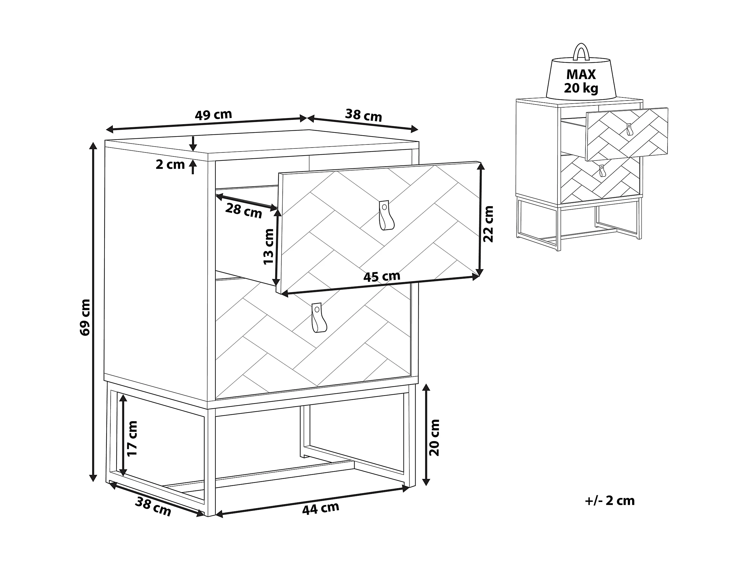 Nachtkastje met 2 lades NUEVA Donkerbruin/wit