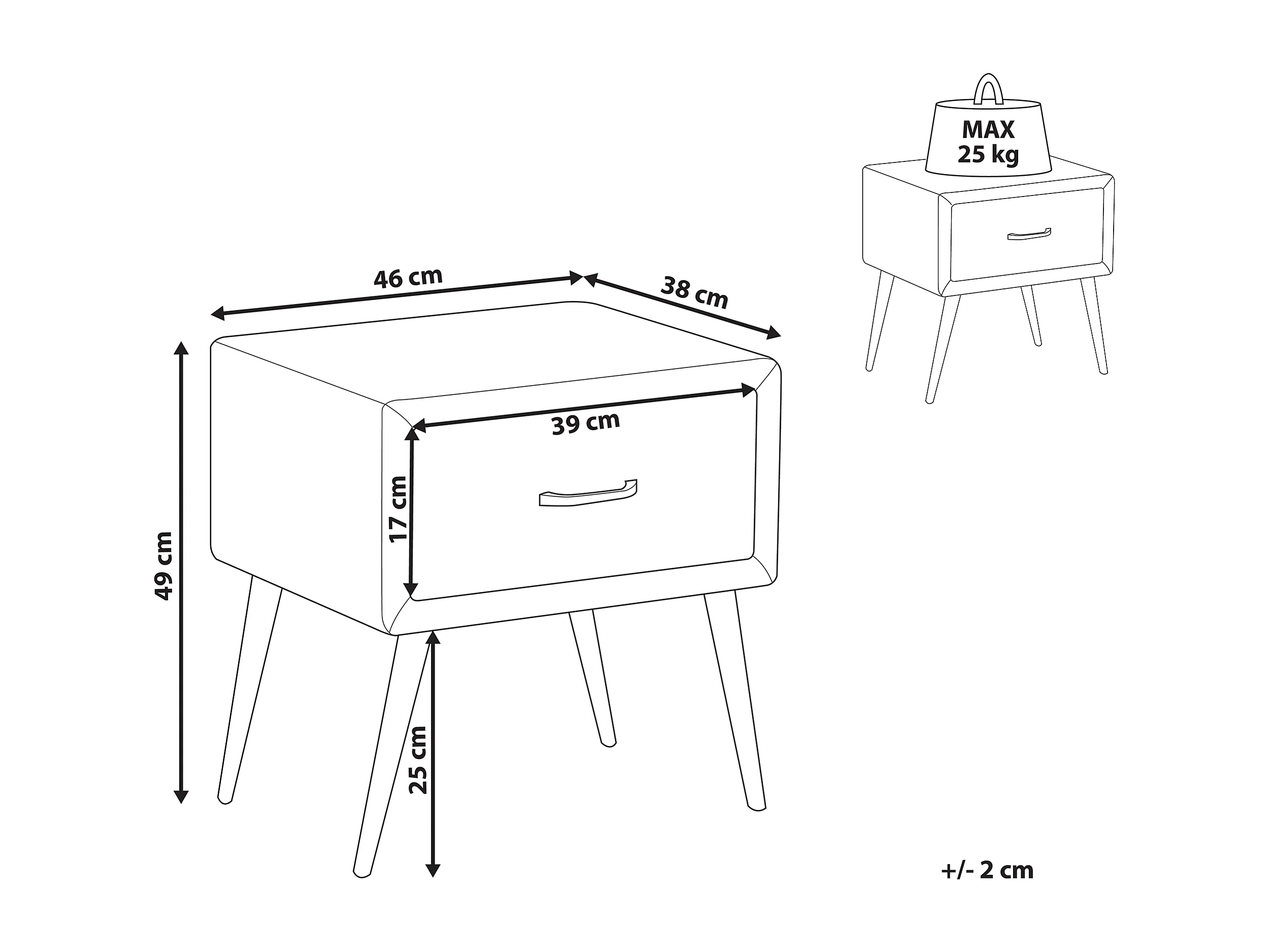 Maby nachtkastje met 1 lade van gelakt hout en zwart staal-Kleur Alt