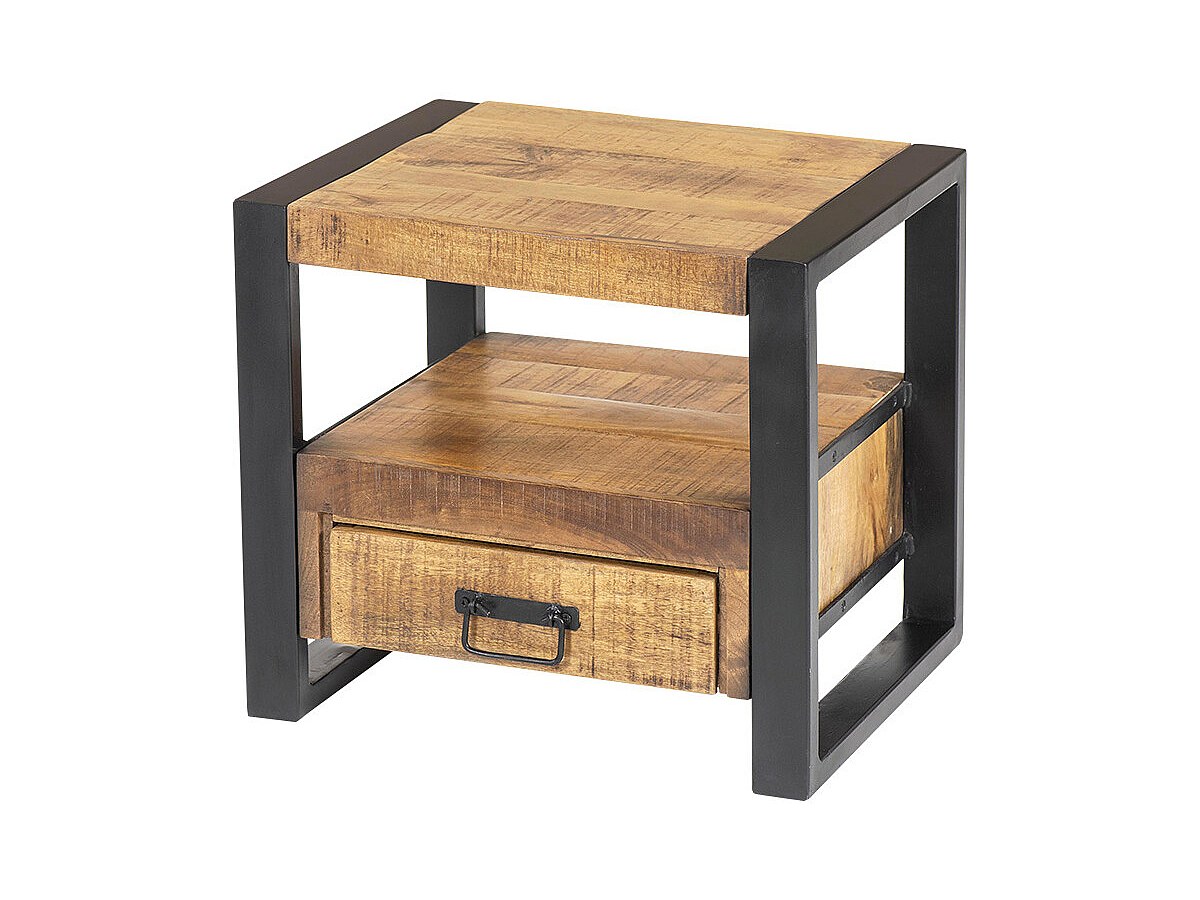 Nachtkastje HARLEM - 1 lade & 1 vak - Mangohout & metaal