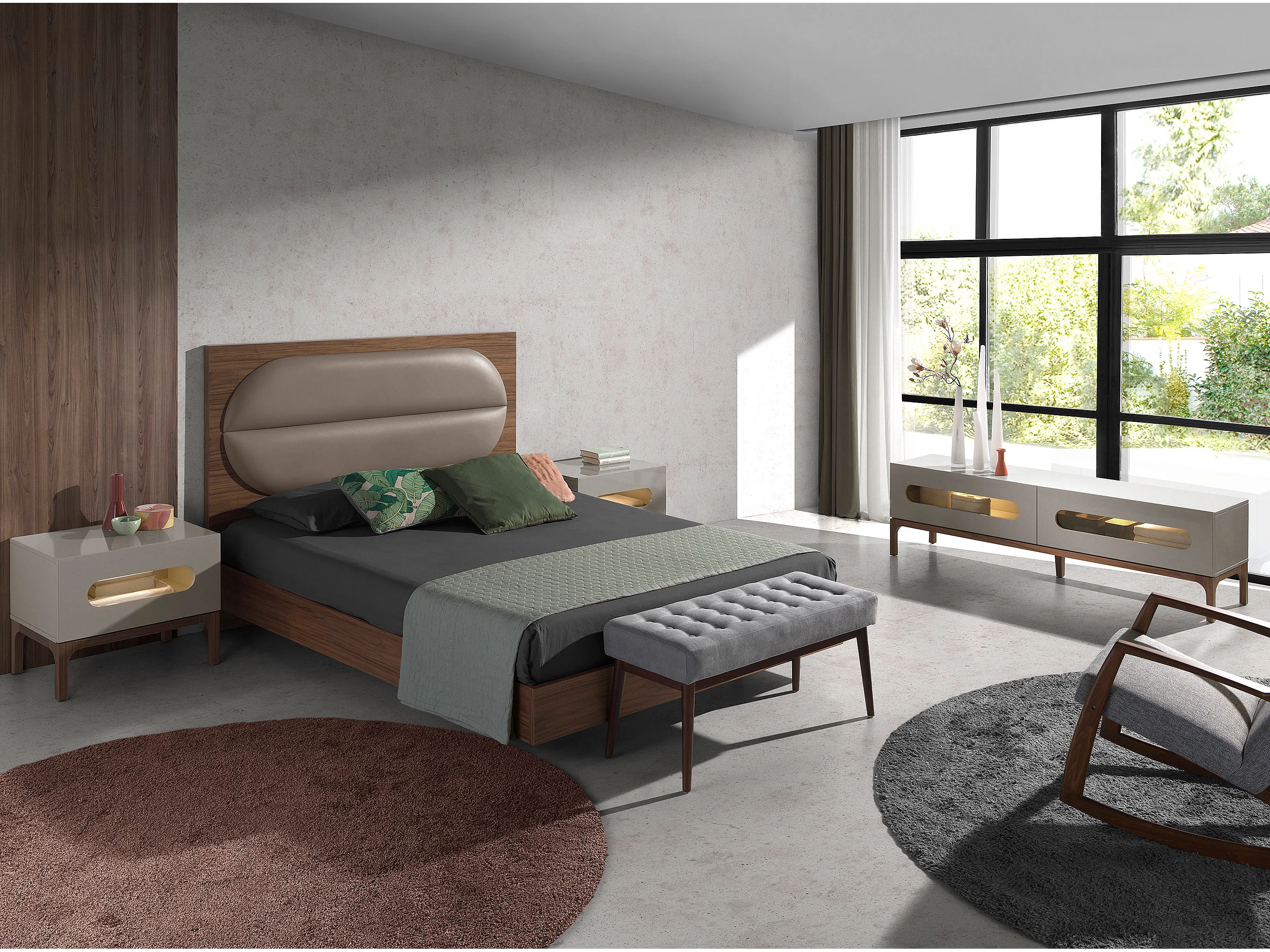 Nachtkastje grijs en walnoothout met binnenverlichting 7144 ANGEL CERDA