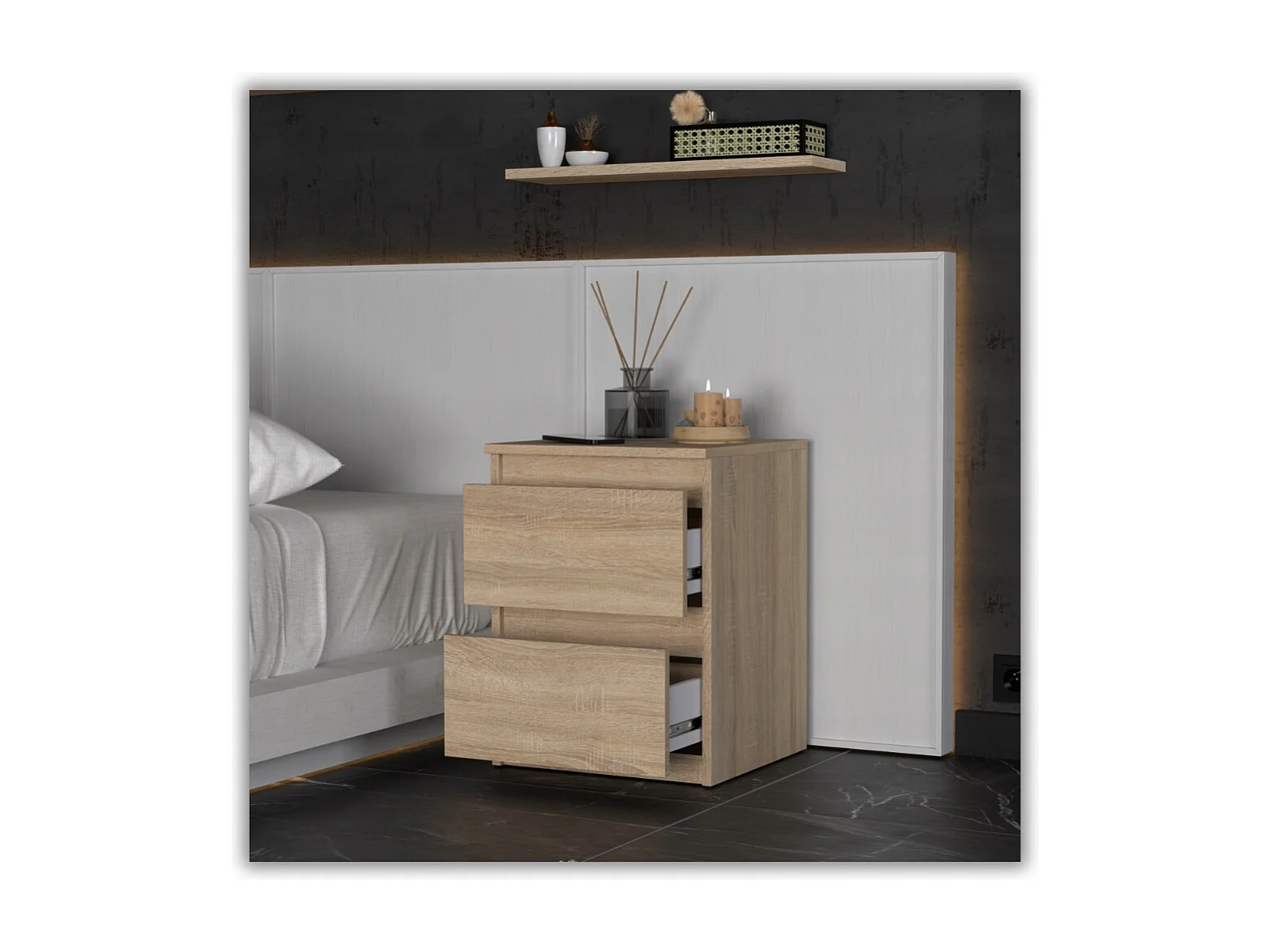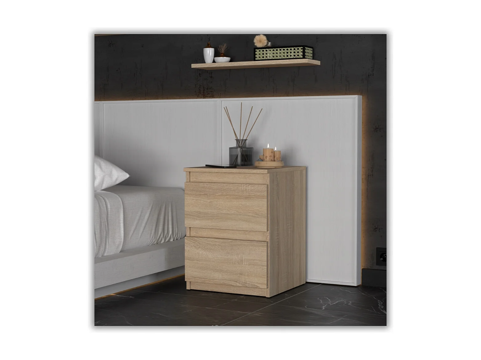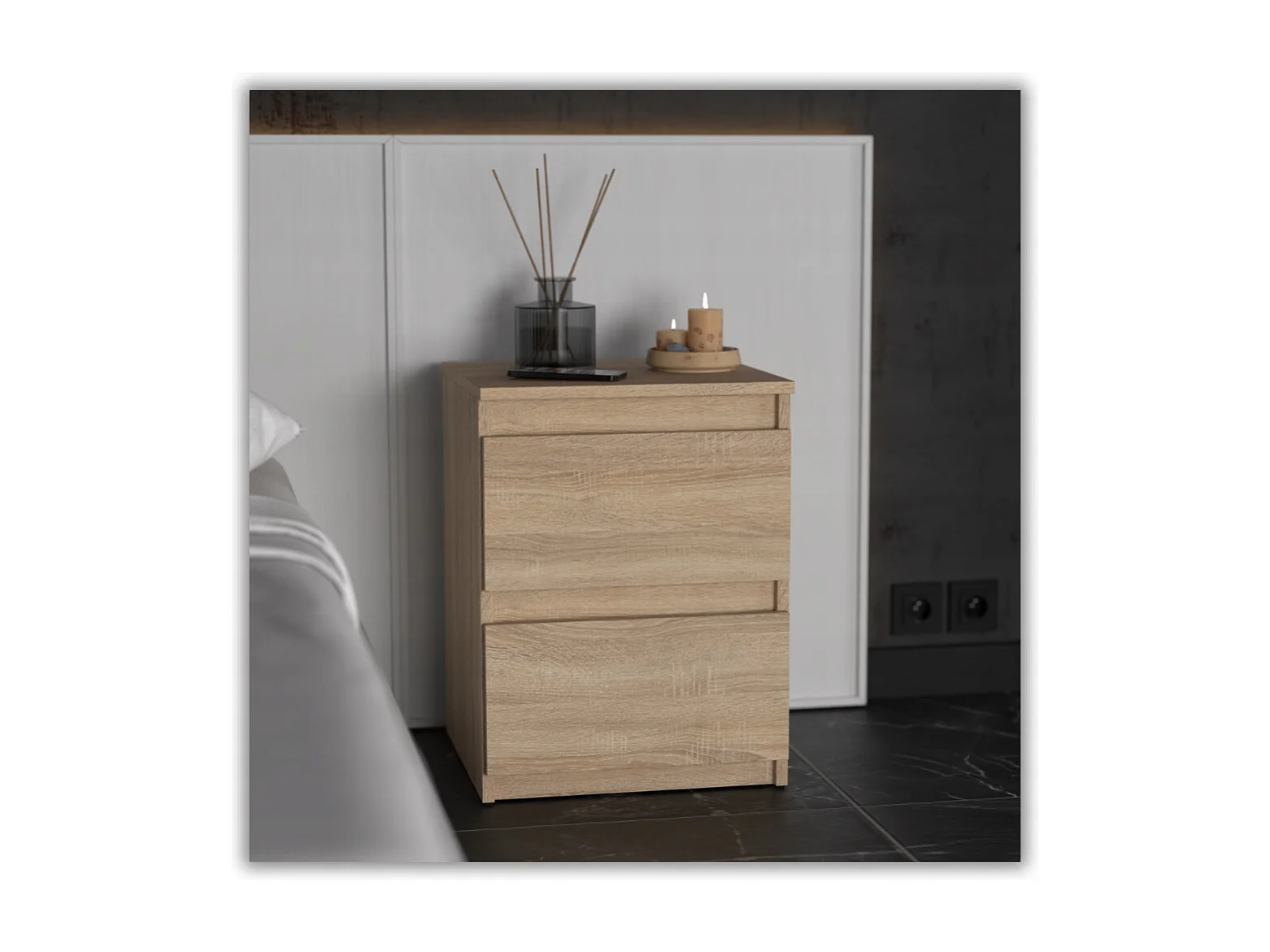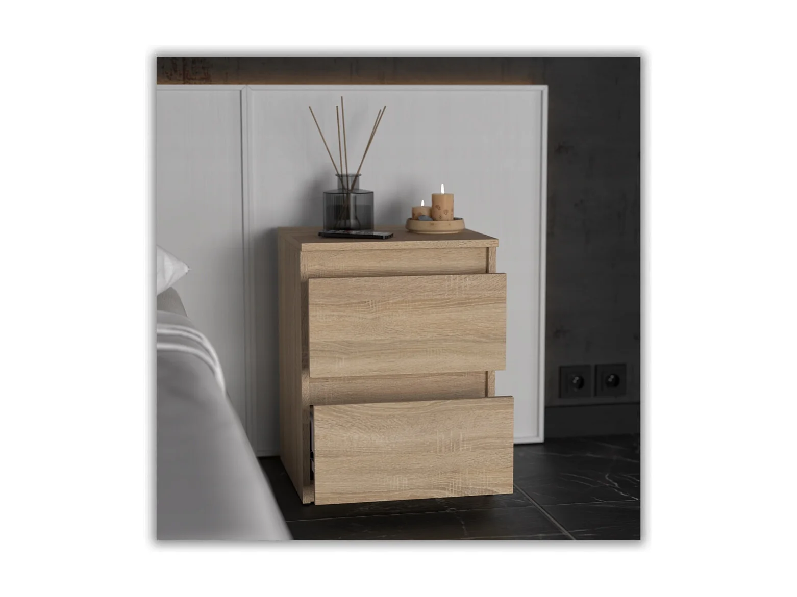 Nachtkastje in Sonoma-eik 40x40x54 cm, met 2 lades, nachtkast voor de slaapkamer