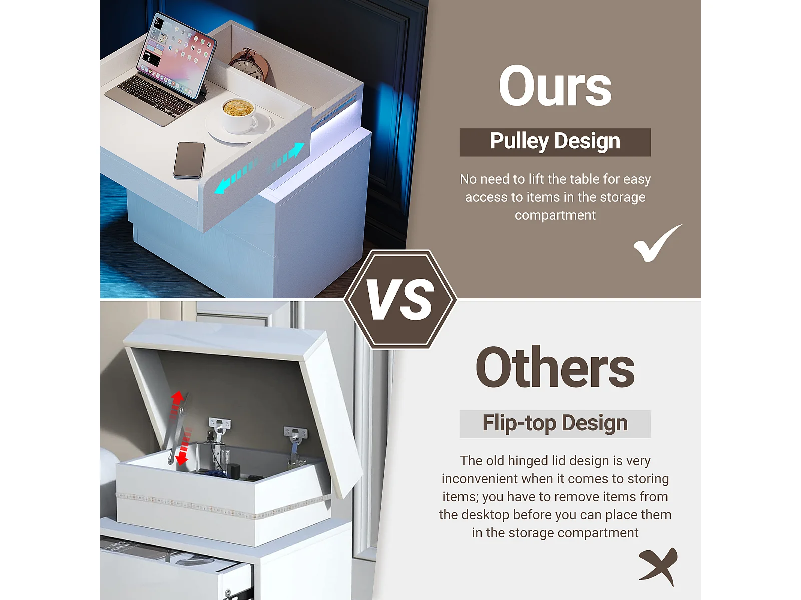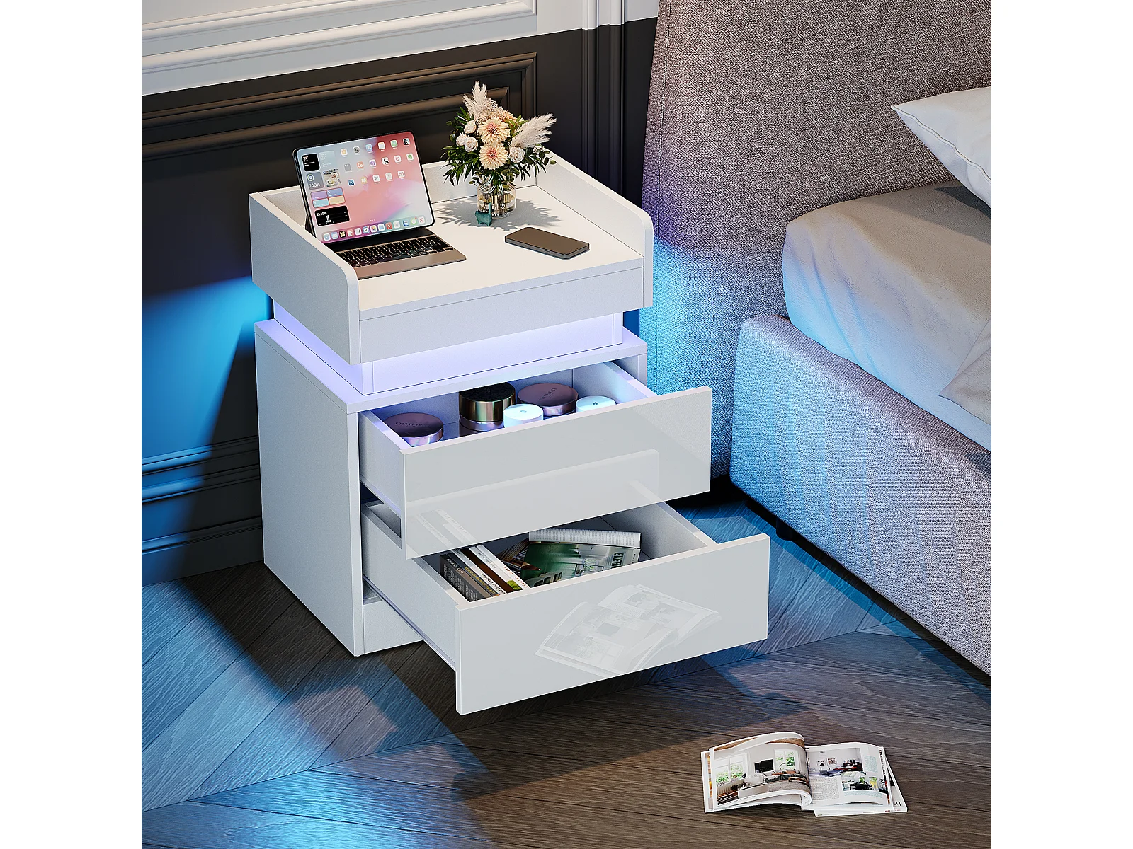 Nachtkastje LED-nachtkastje met 2 opbergladen en meerkleurige LED-strip, opbergruimte op het bovenste niveau, 45x33,5x58cm, wit