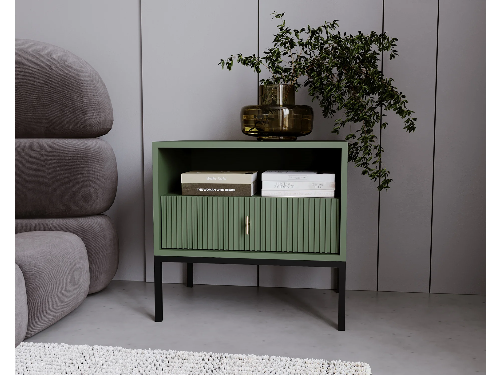 Nachtkastje Maggiore rookgroen / zwart / goud