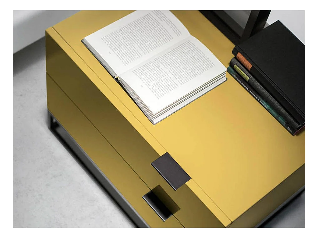 Maby nachtkastje met 1 lade van gelakt hout en zwart staal-Kleur Zwavel
