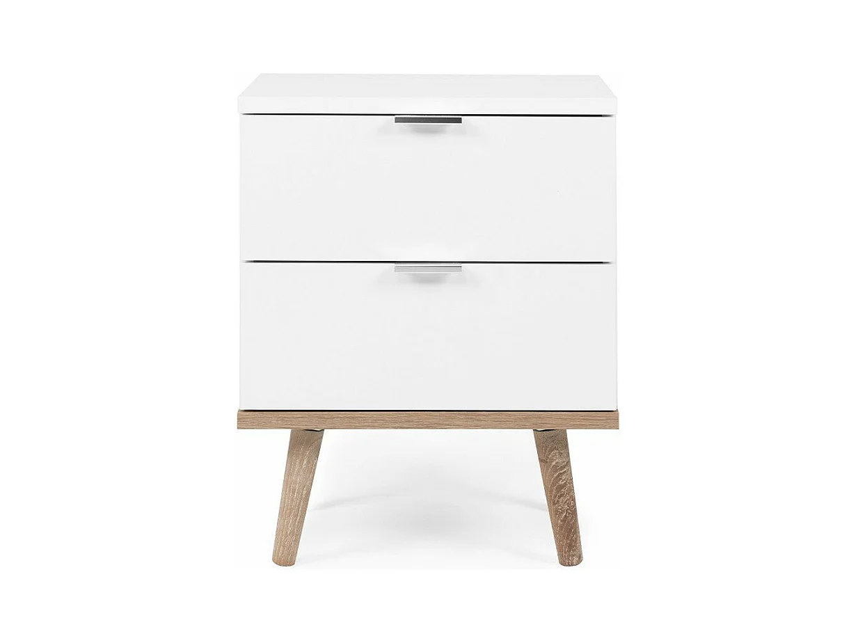 Nachtkastje Miranda met 2 laden Wit, Gelakt MDF, Houten poten