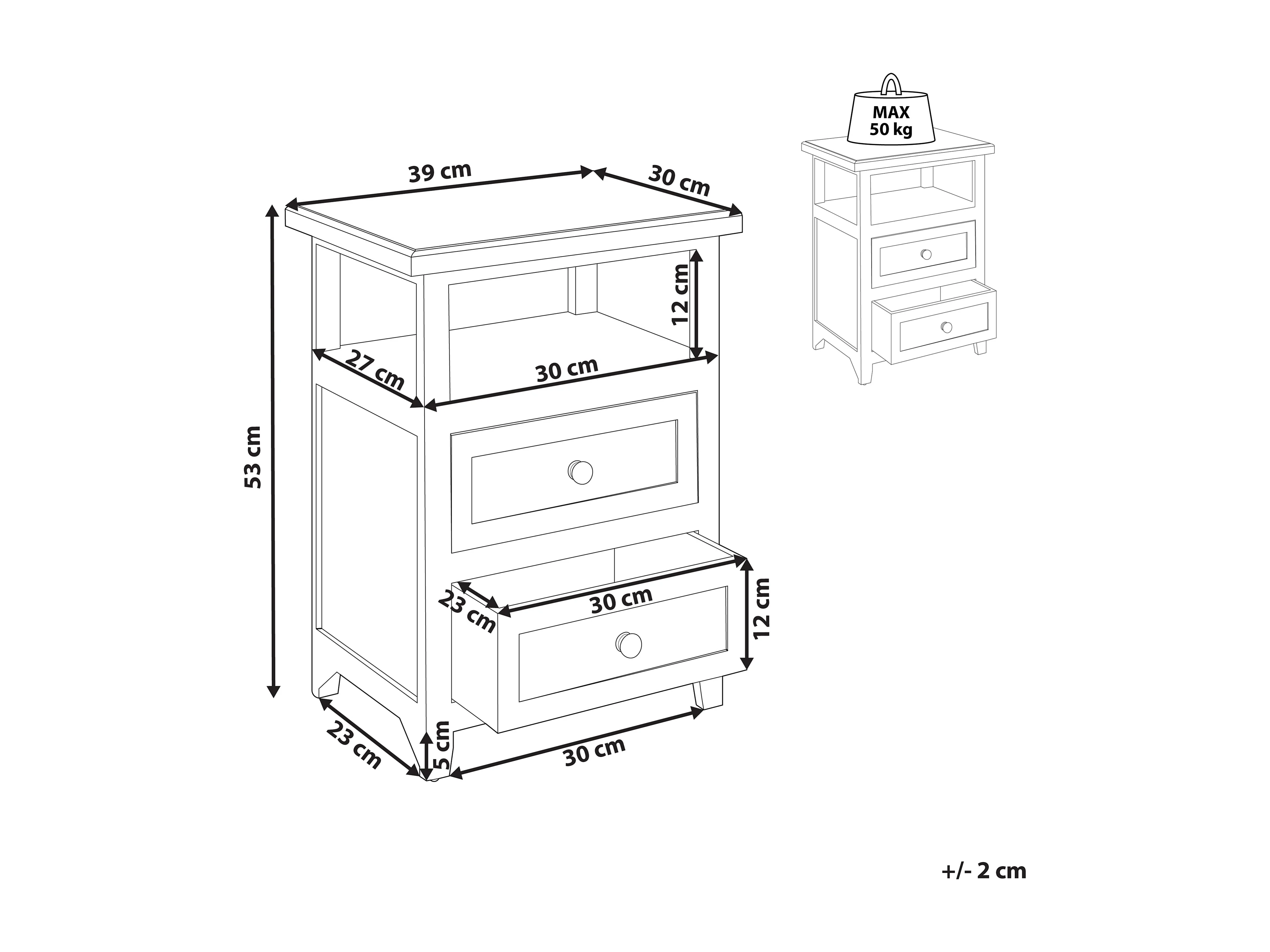 Nachtkastje met 2 lades LAYOLA Wit