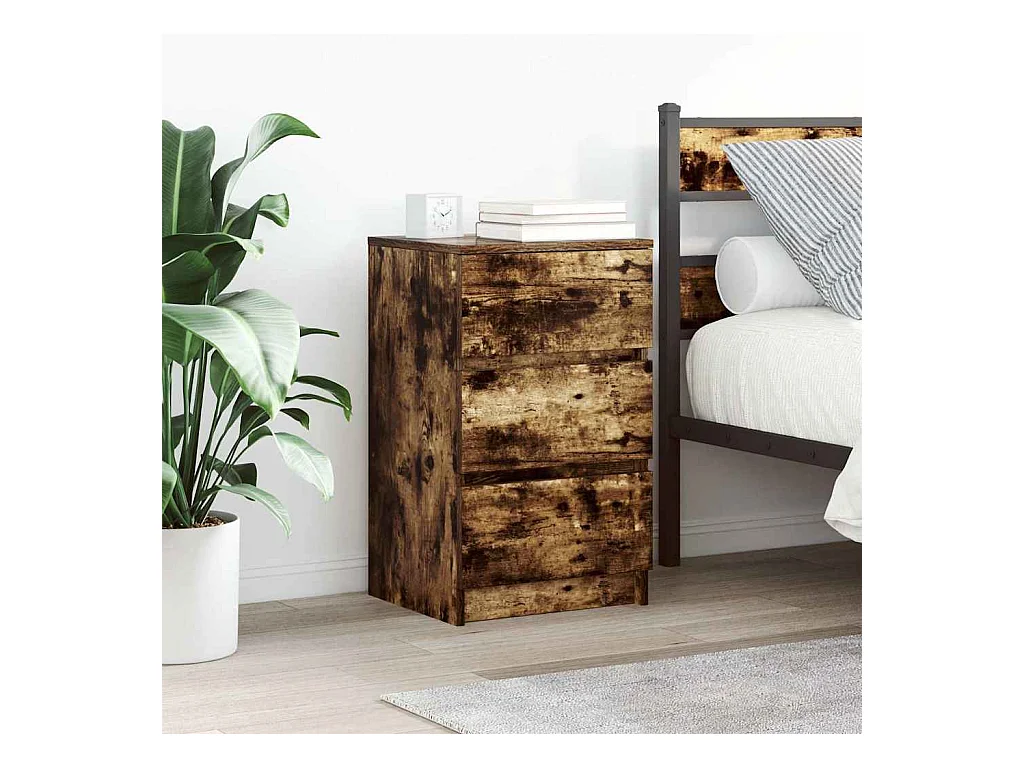 Nachtkastje met 3 lades gerookt eiken 39x35x65 cm
