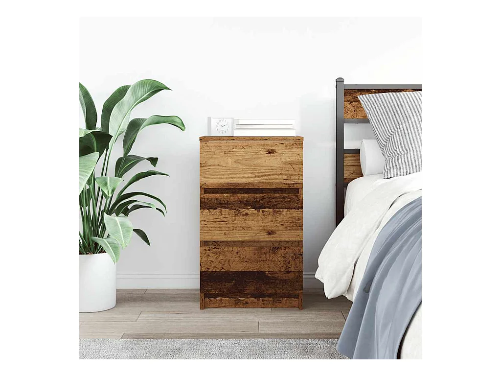 Nachtkastje met 3 lades, oud hout, 39x35x65 cm