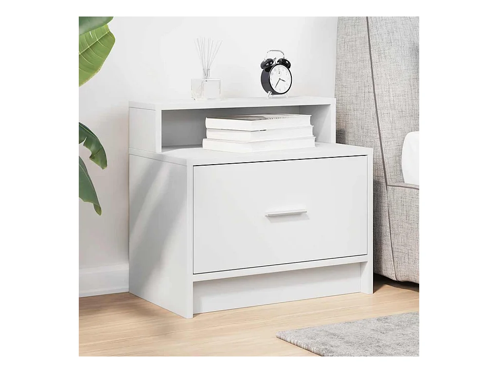 Nachtkastje met LED-verlichting wandgemonteerd wit