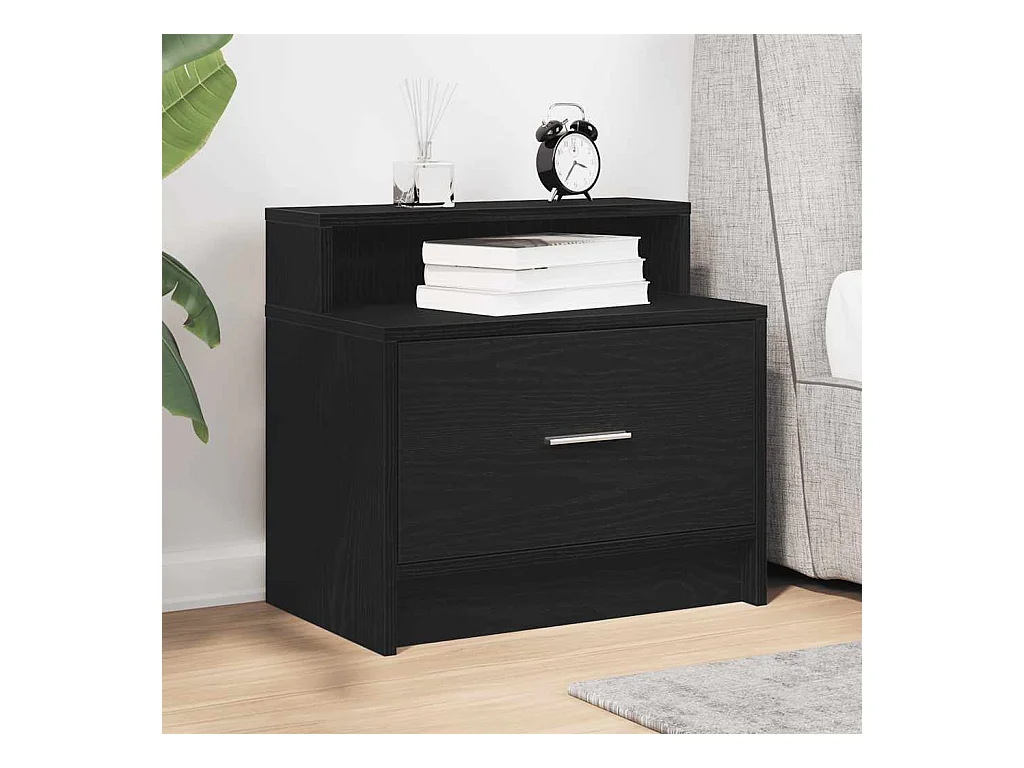 Nachtkastje met lade 51x31x47 cm zwart eikenkleurig