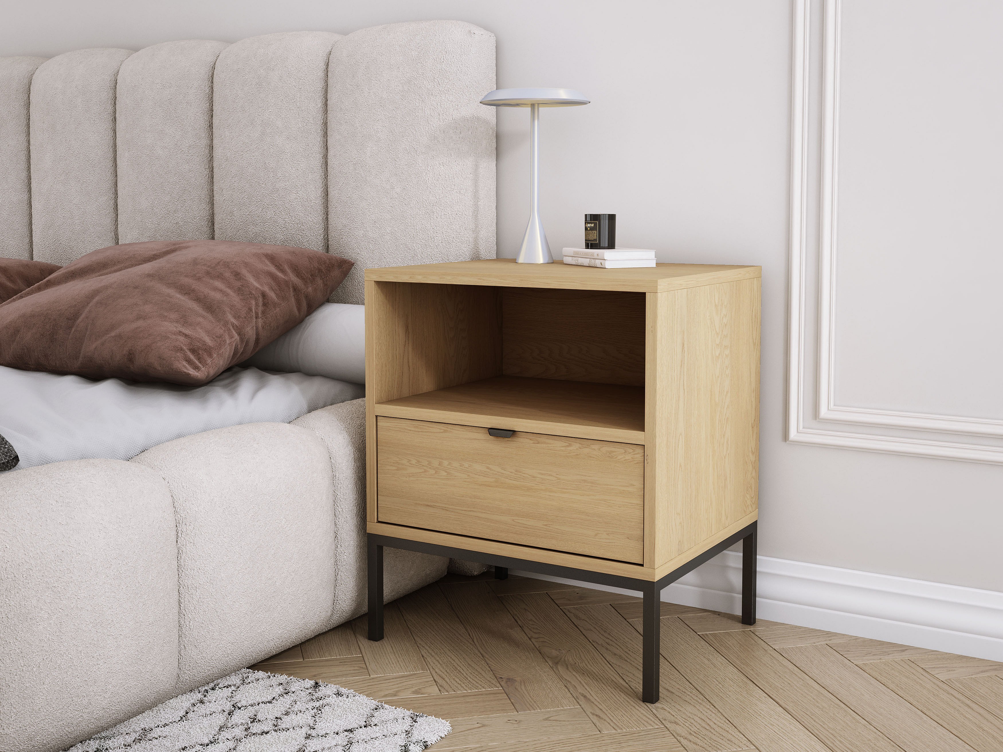 Nachtkastje met lade en frame, gouden handgreep, Cremona eiken, 50 x 40 x 58 cm