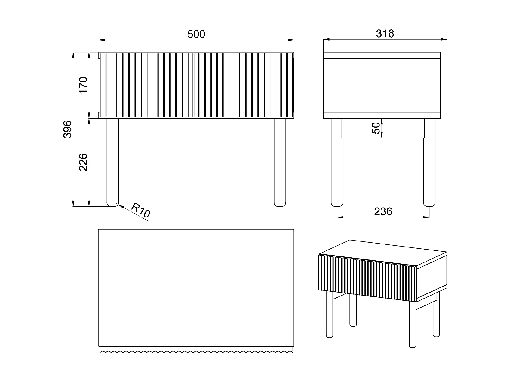 Nachtkastje - 50cm - met lade - hangend - eiken - NOLIE