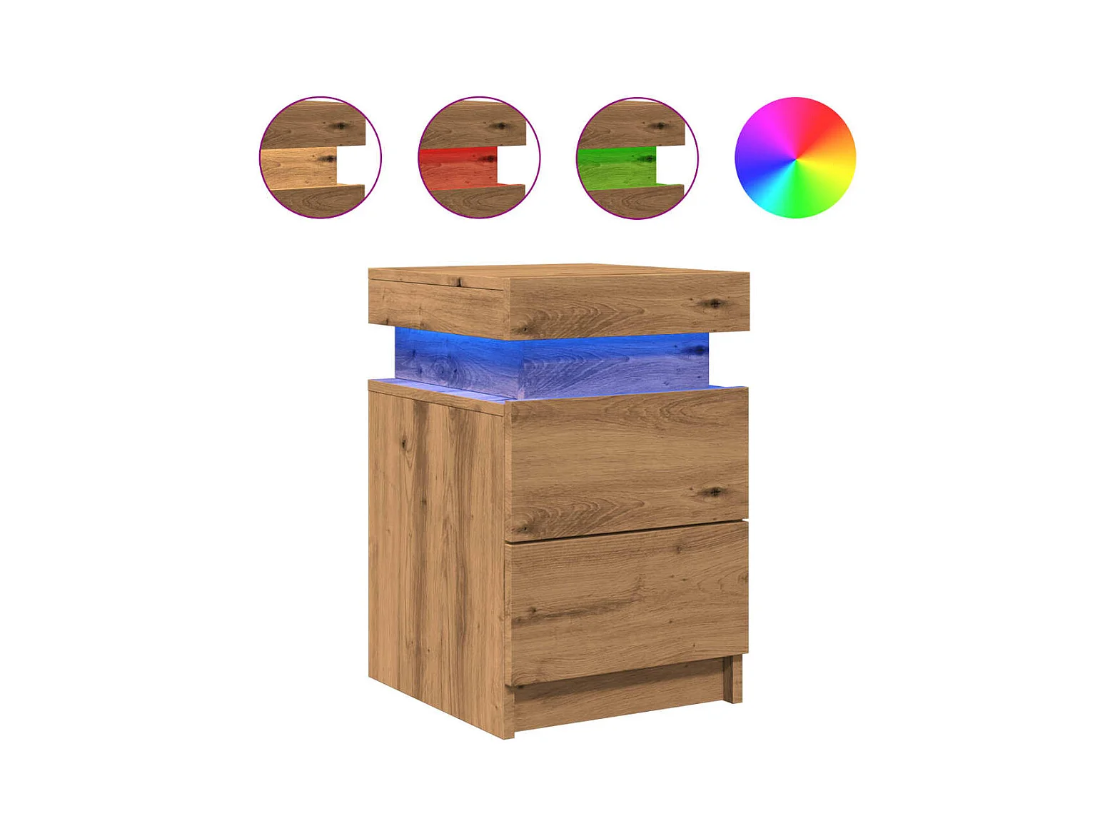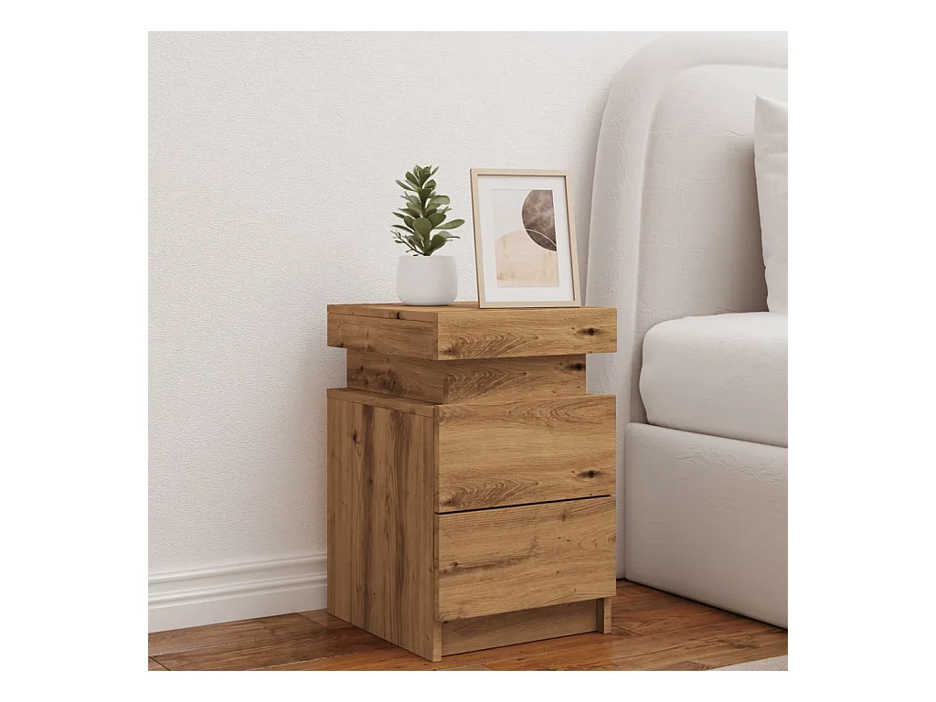Nachtkastje met LED 35x39x55 cm bewerkt hout artisanaal eiken