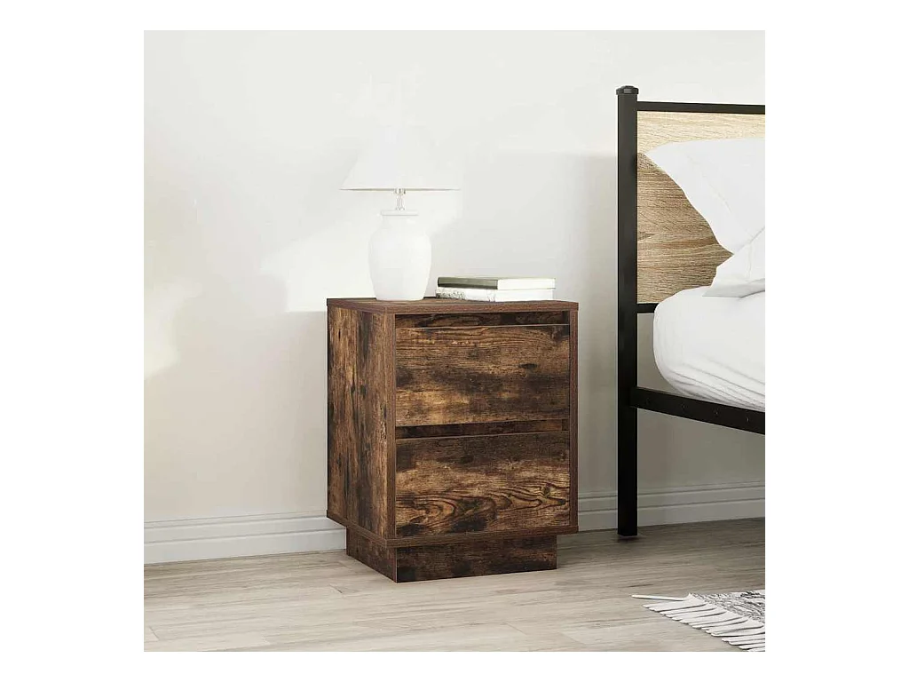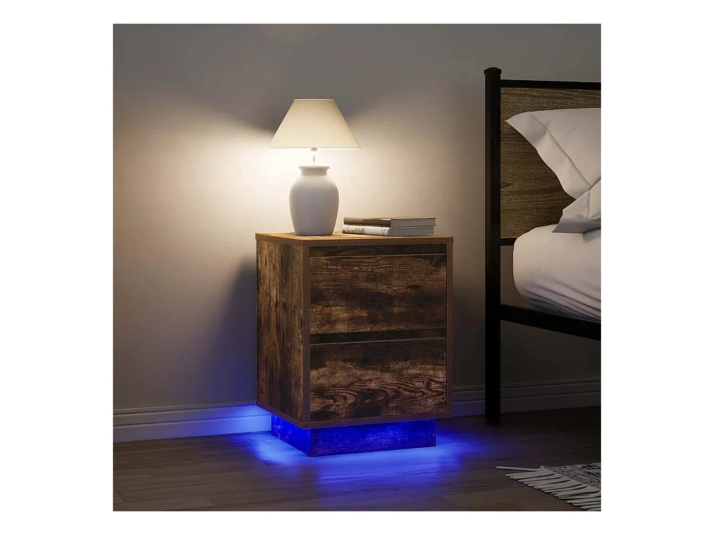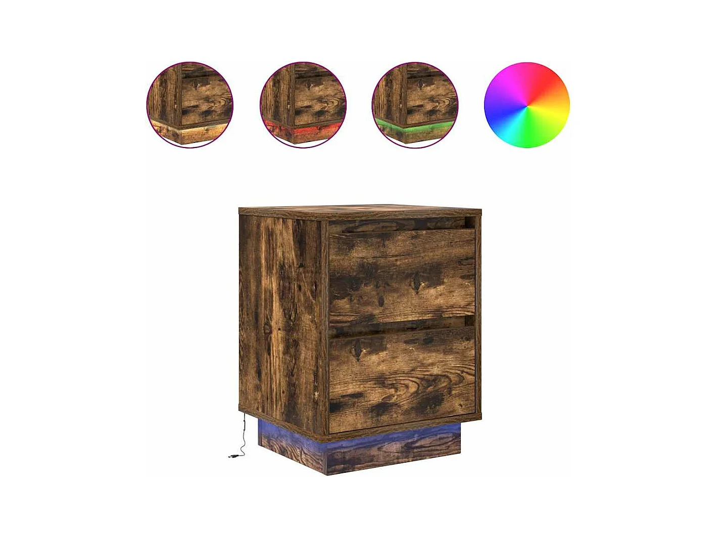 nachtkastje met LED-verlichting bewerkt hout gerookt eikenkleur