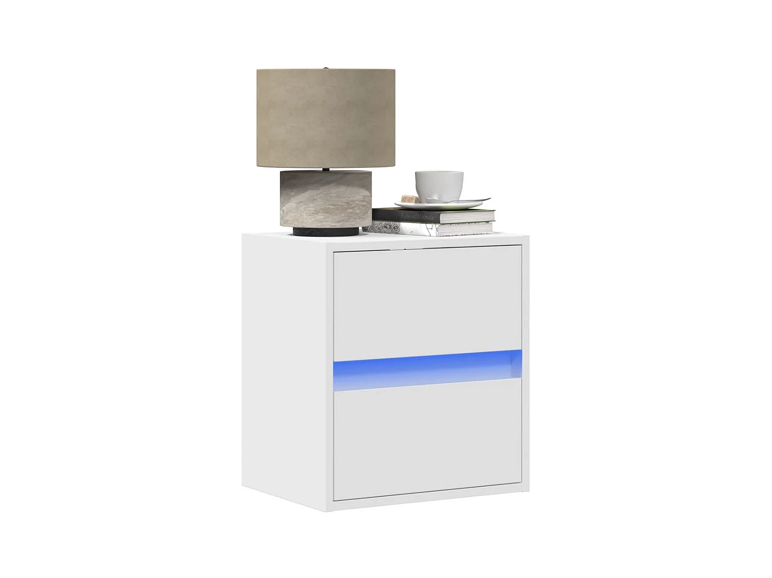Nachtkastje met LED-verlichting wandgemonteerd wit