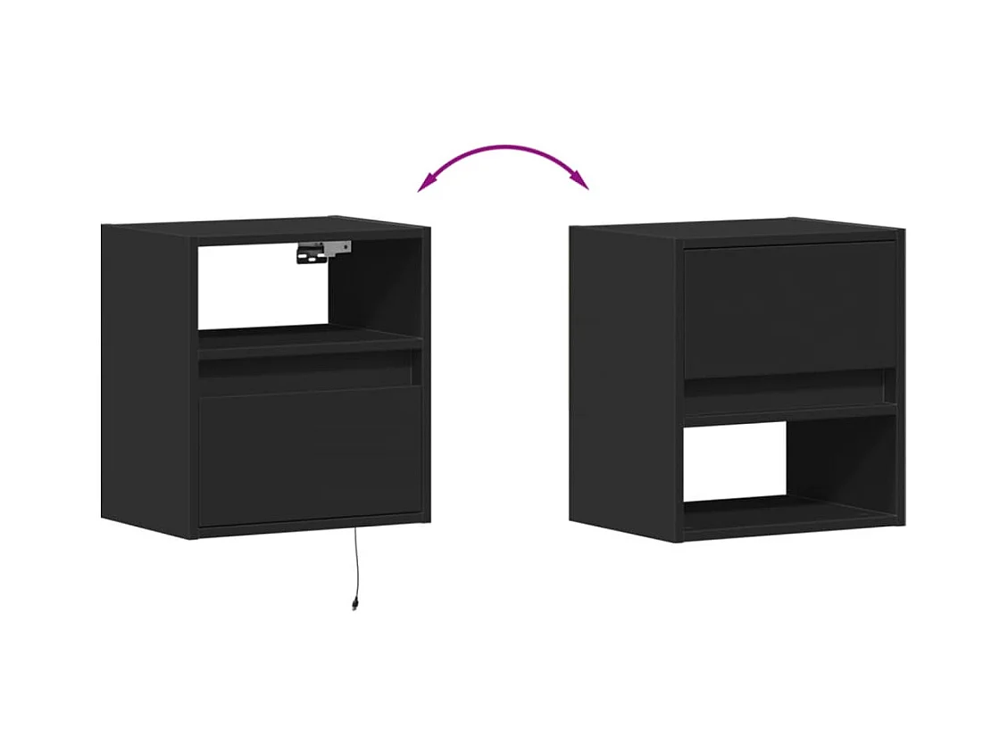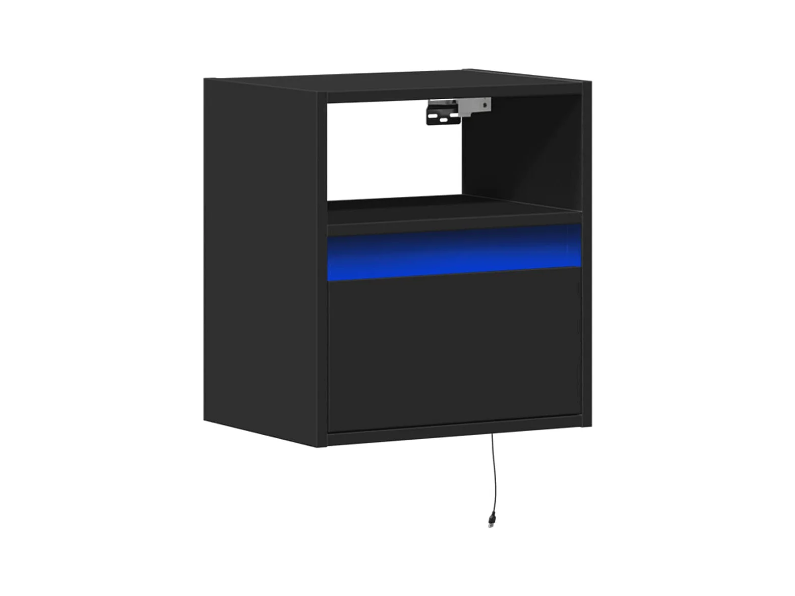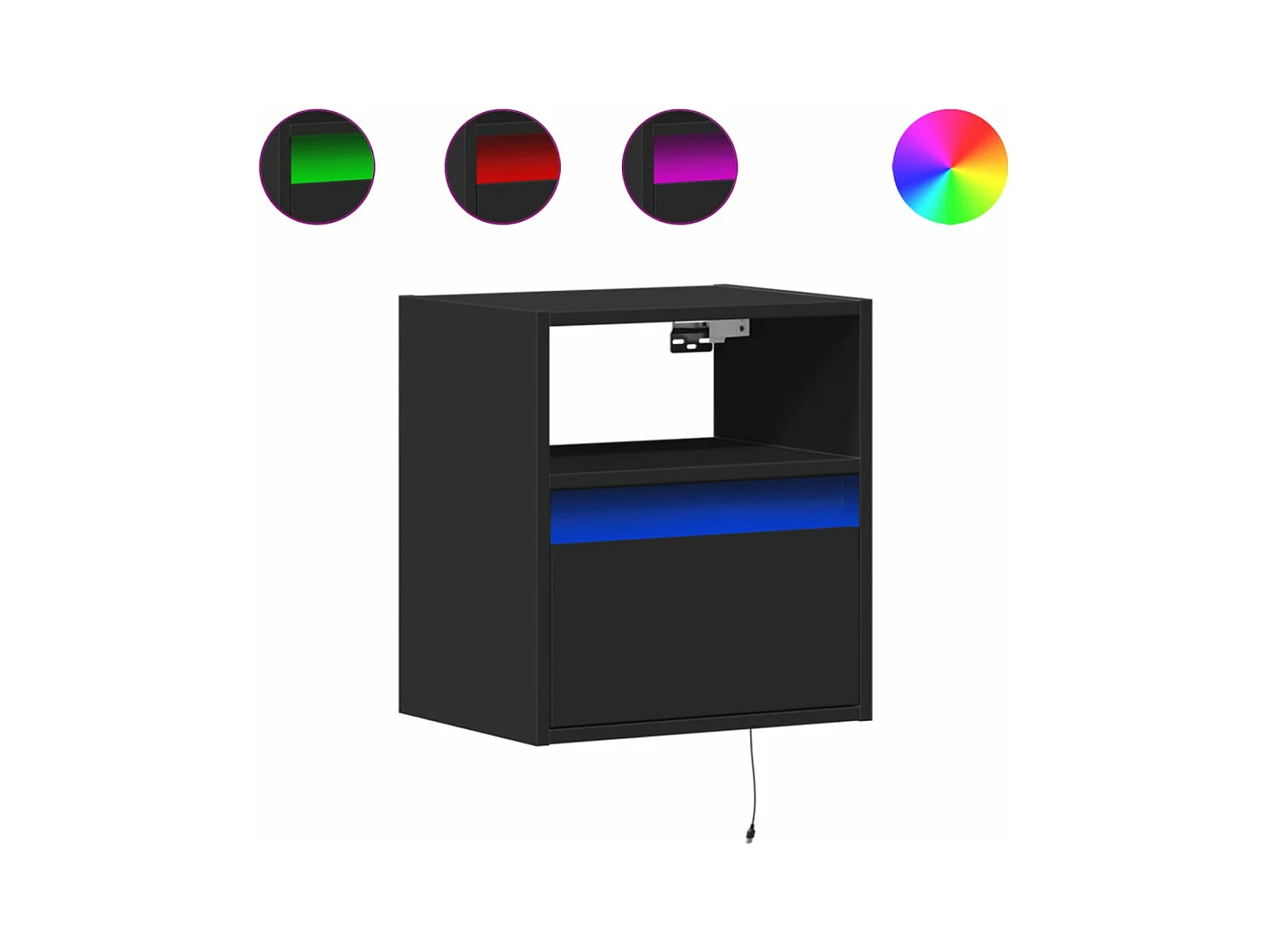 Nachtkastjes met LED's 2 st wandgemonteerd zwart