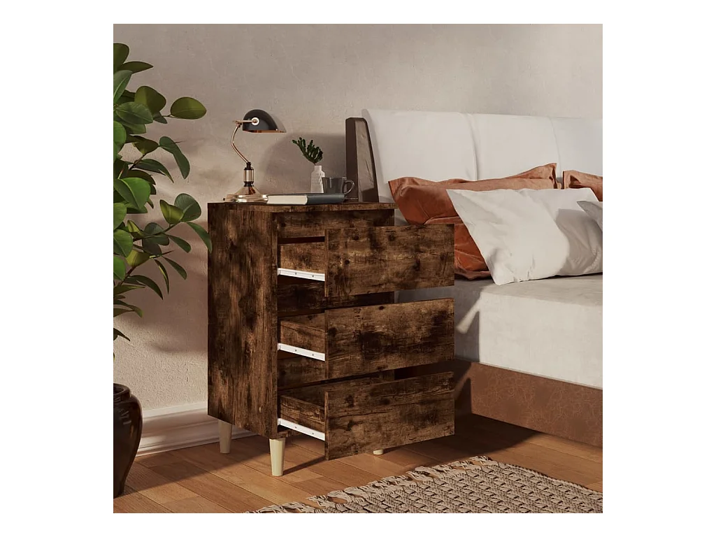 Nachtkastje met massief houten poten Gerookt eikenhout 40x35x69cm