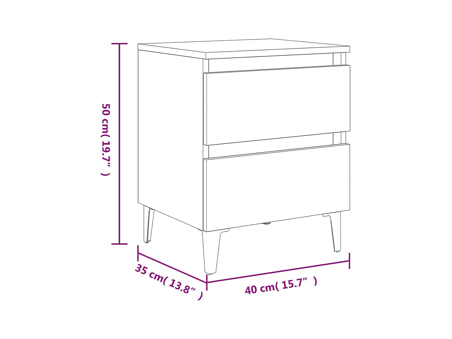 Nachtkastje met metalen poten 40x35x50 cm gerookt eikenkleurig