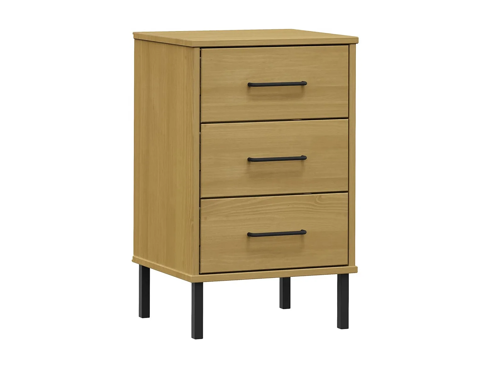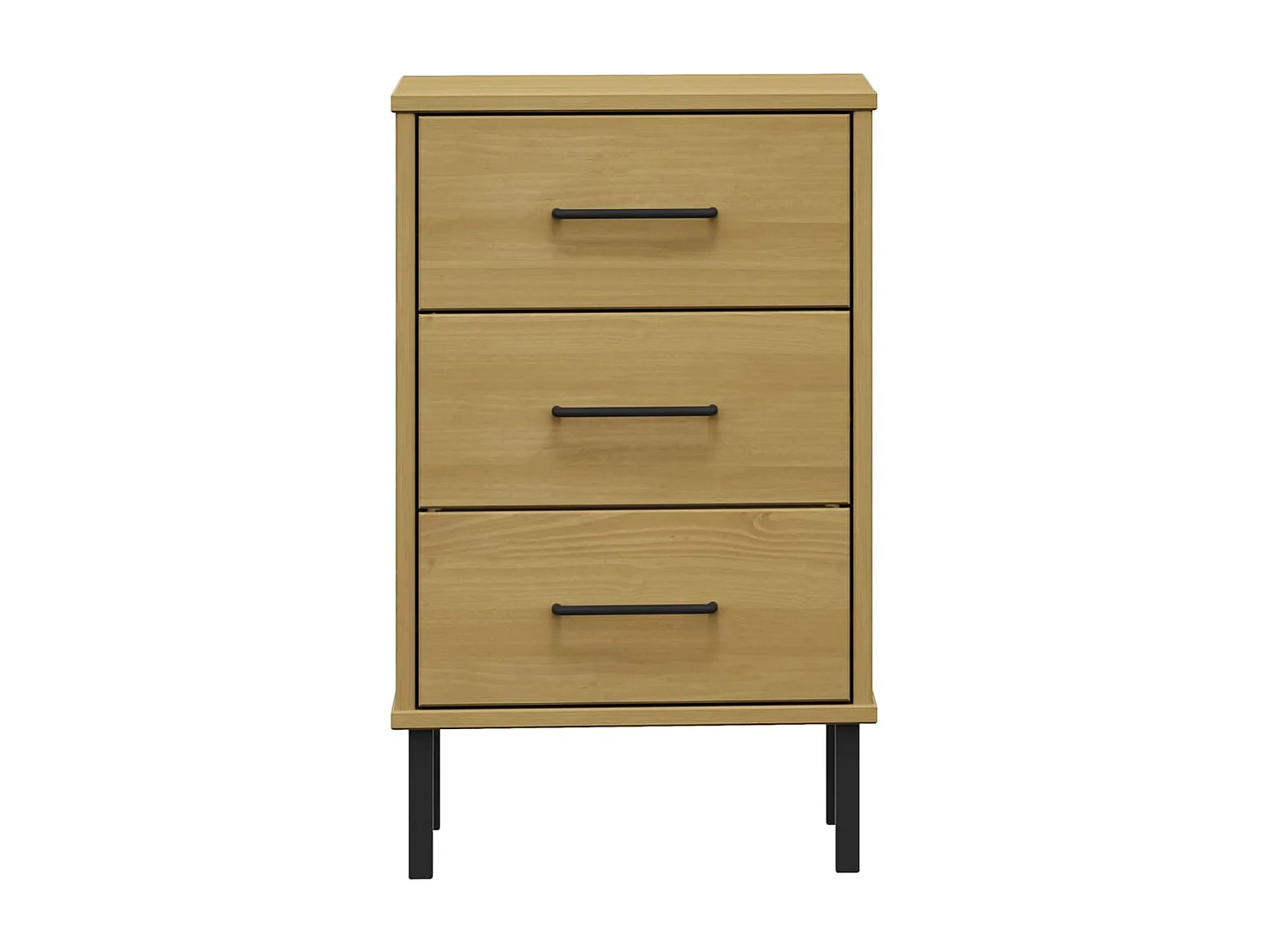 Nachtkastje met metalen poten Bruin Massief grenenhout OSLO