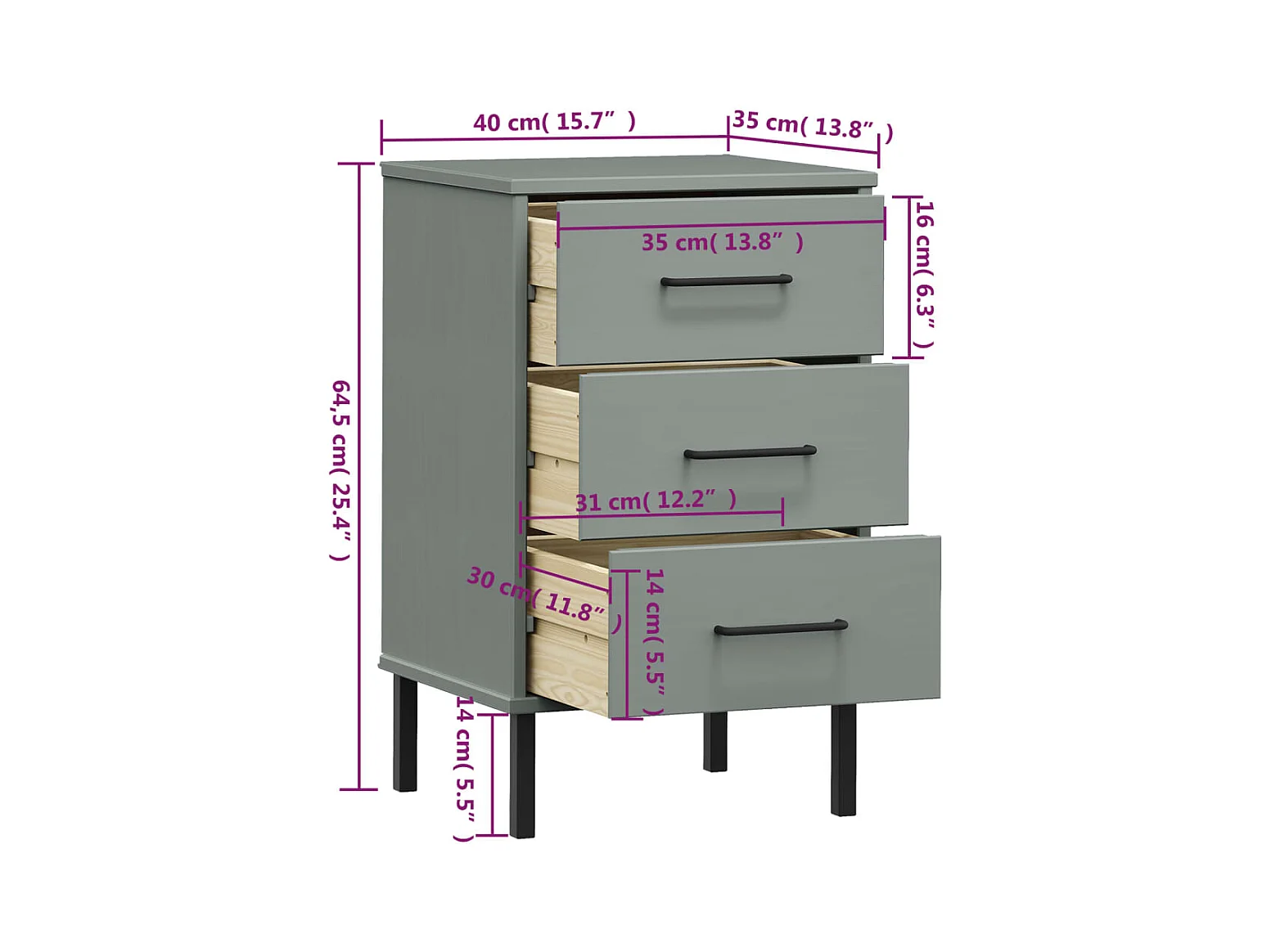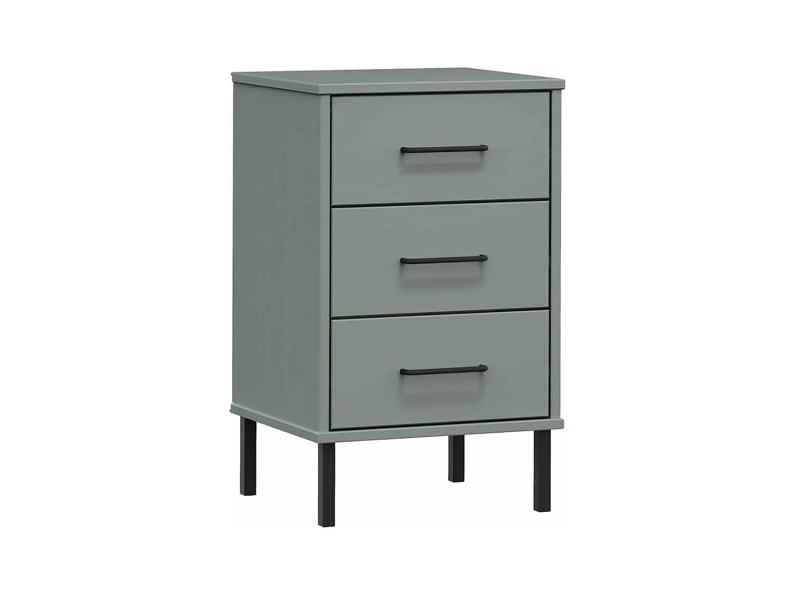 Nachtkastje met metalen poten OSLO massief grenenhout grijs