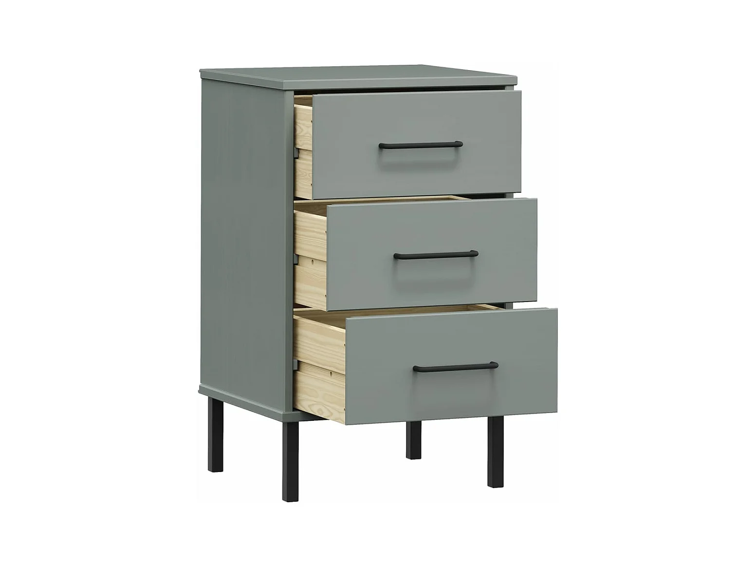 Nachtkastje met metalen poten OSLO massief grenenhout grijs