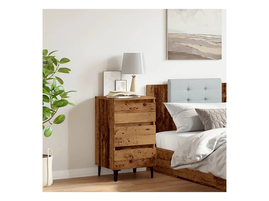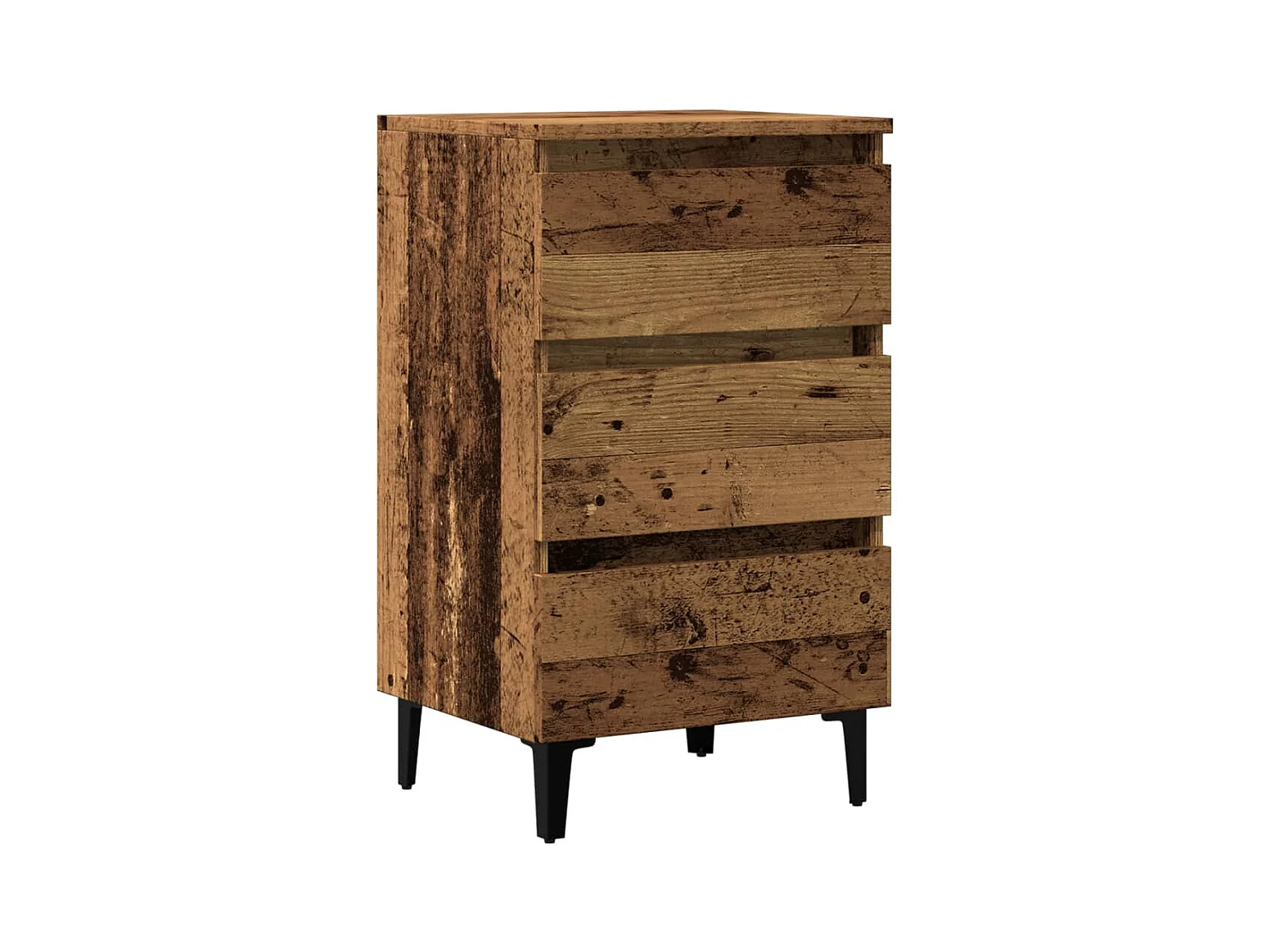 Nachtkastje met metalen poten 40x35x69 cm oud houtkleurig