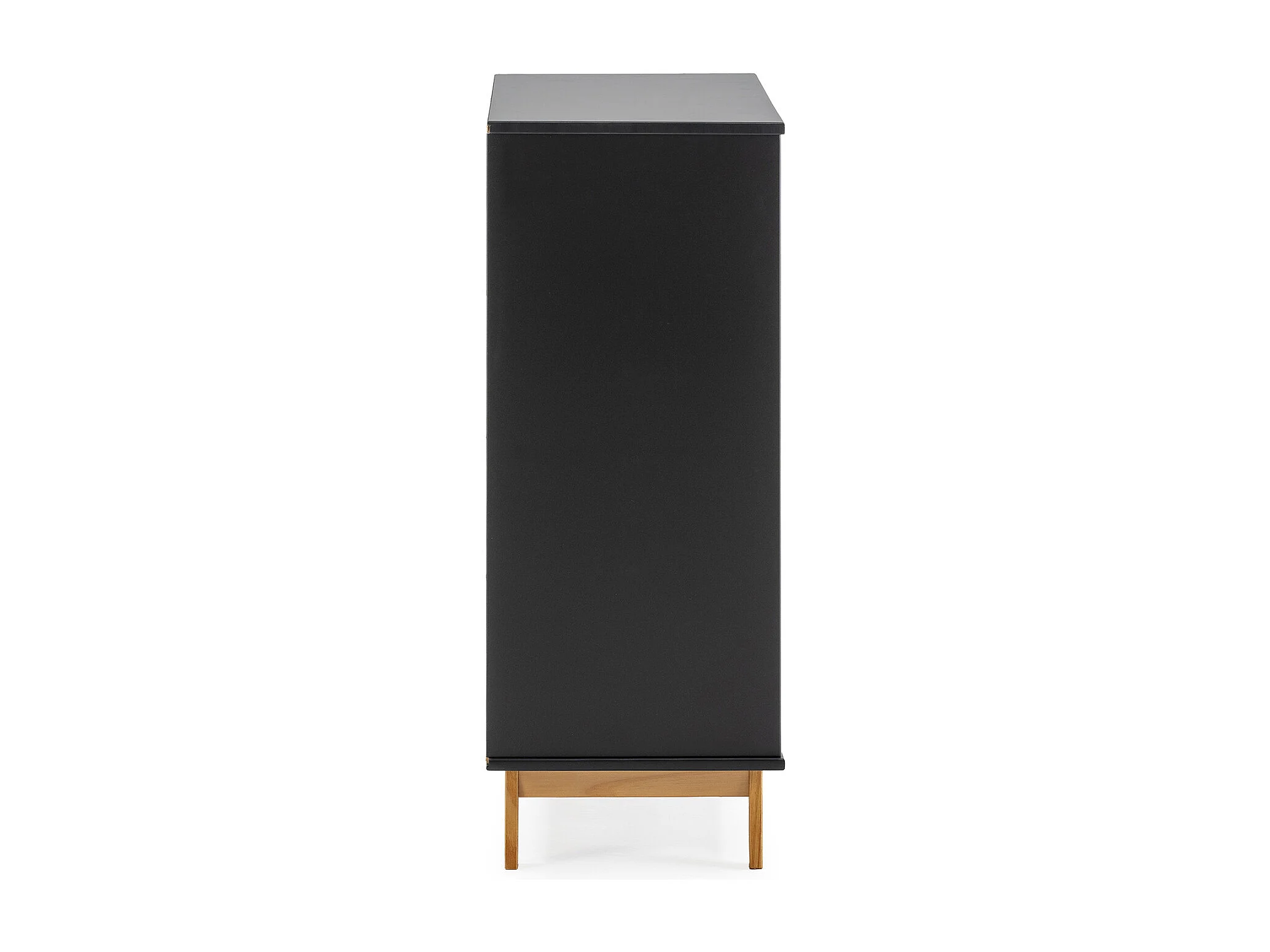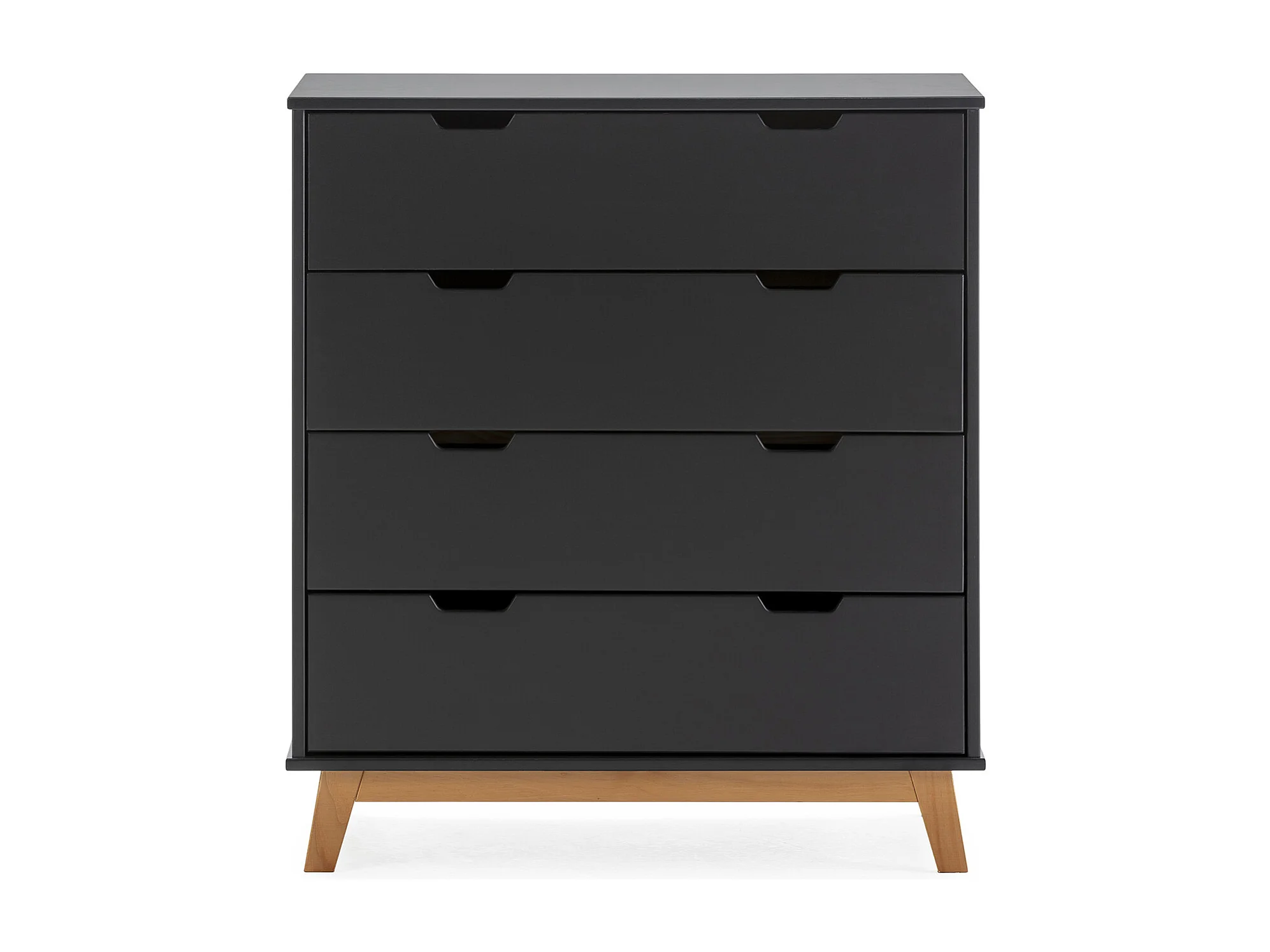 Nachtkastje Miranda met 4 laden Antraciet, gelakt MDF, houten poten en metalen geleiders