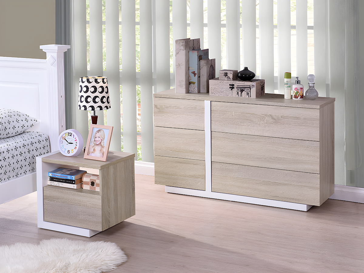 Nachtkastje NAPOLI - 1 laden - Eiken en wit
