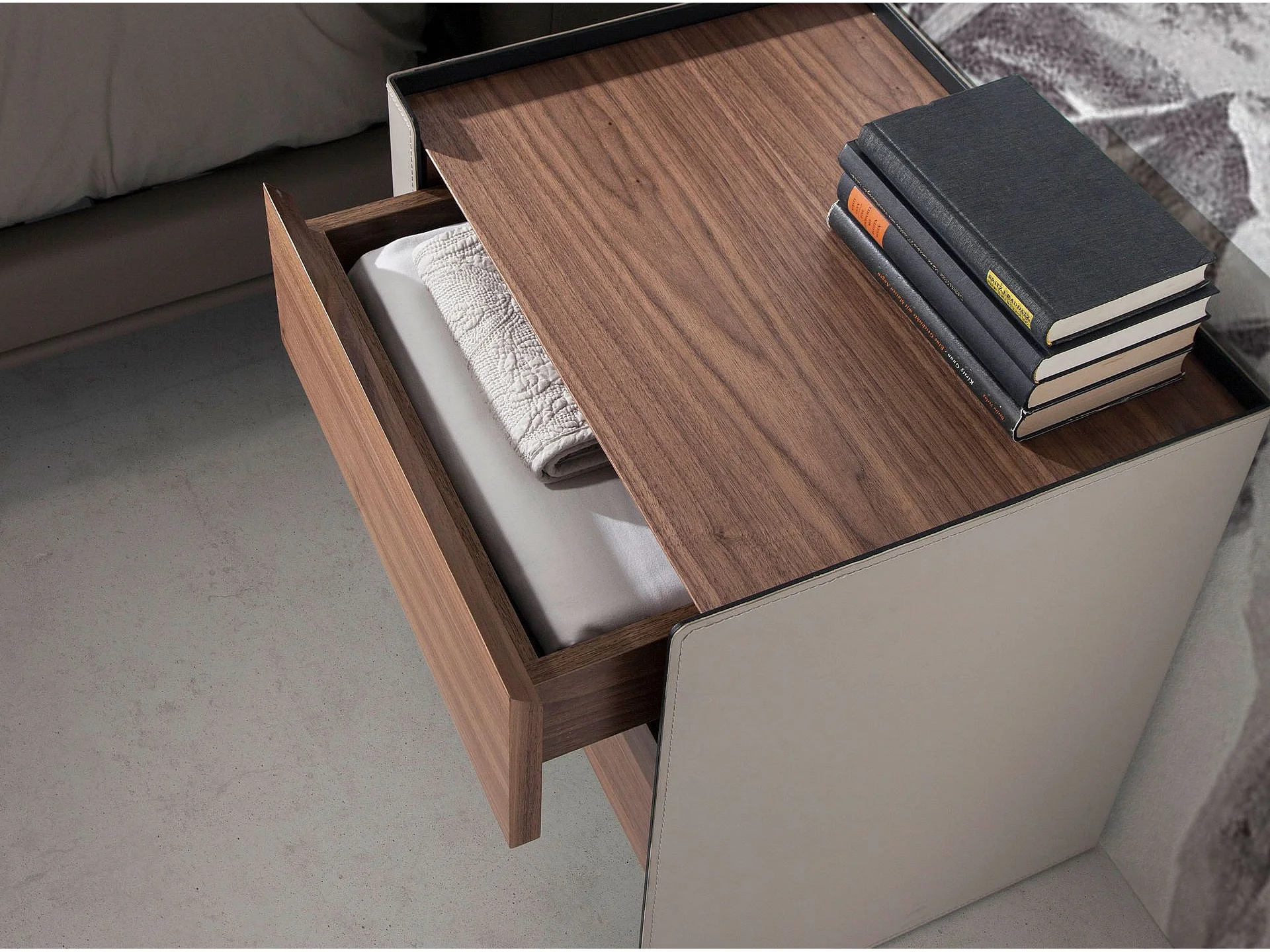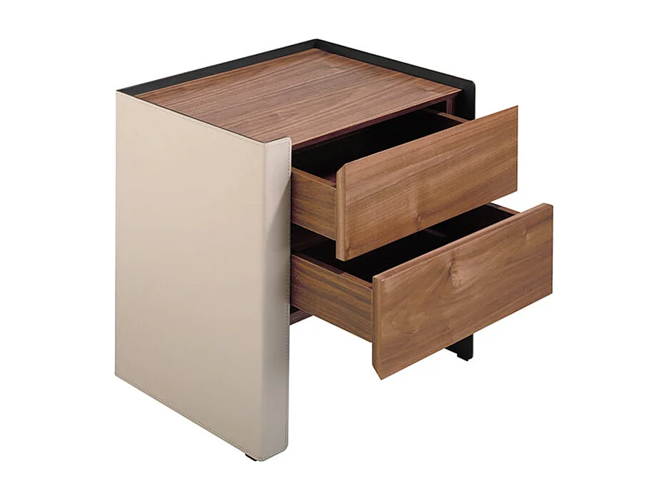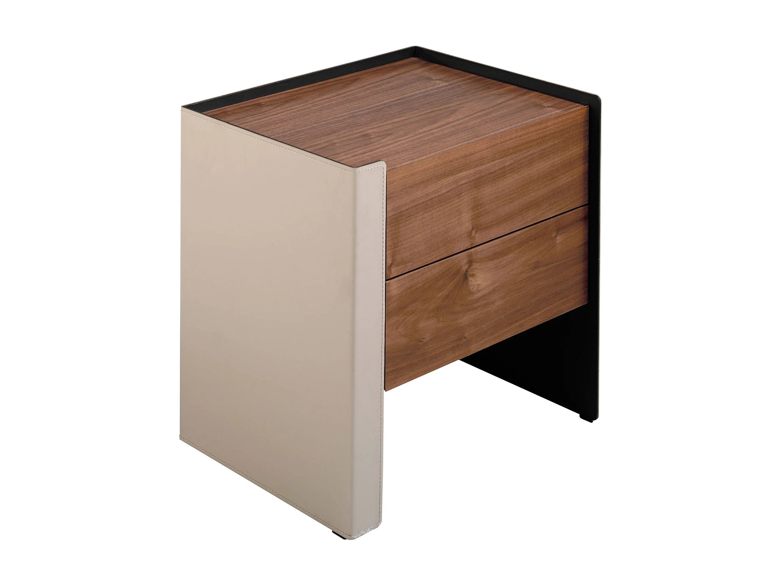 Nachtkastje van ecoleder, walnoot en zwart staal 7118 ANGEL CERDA
