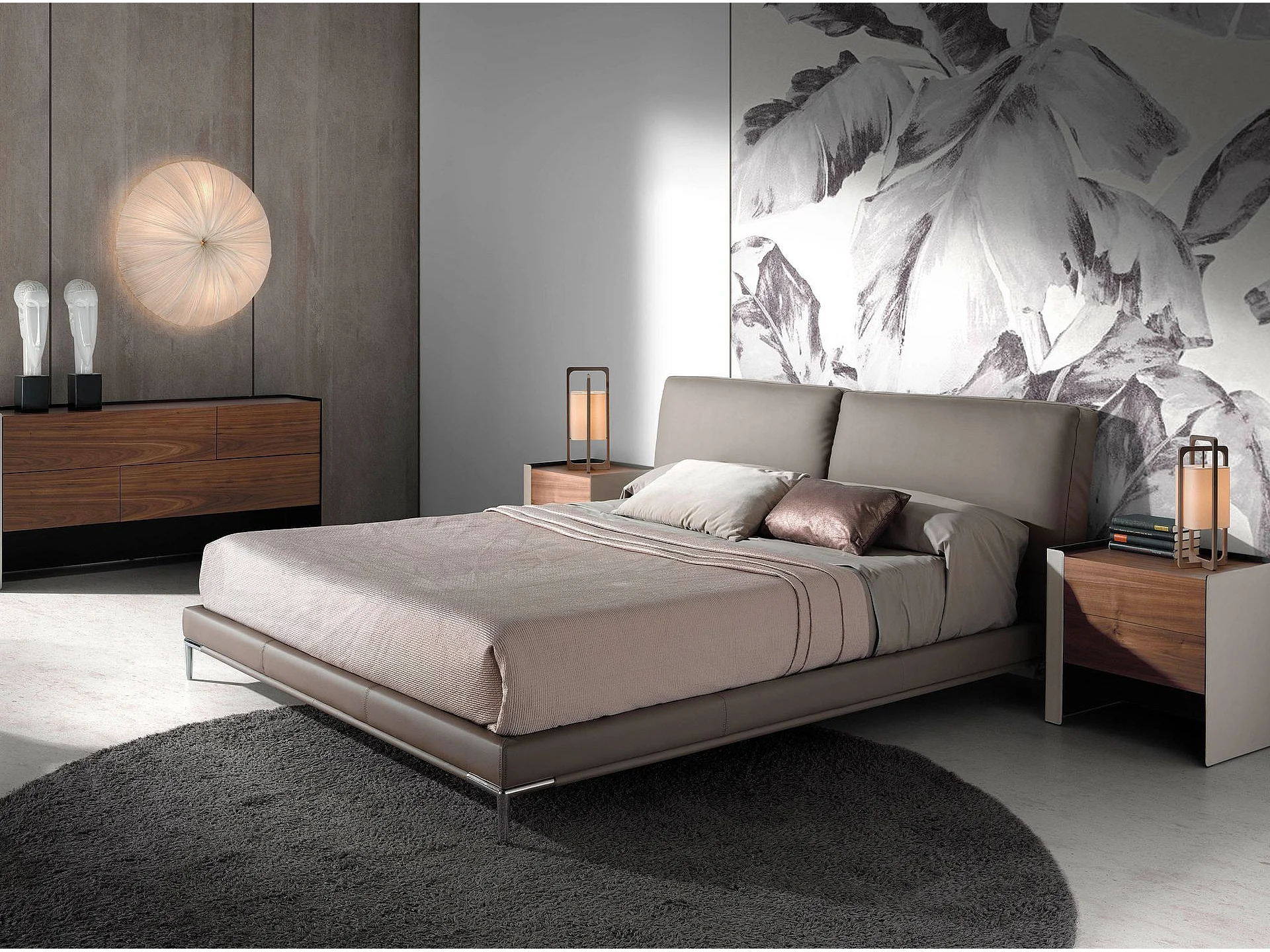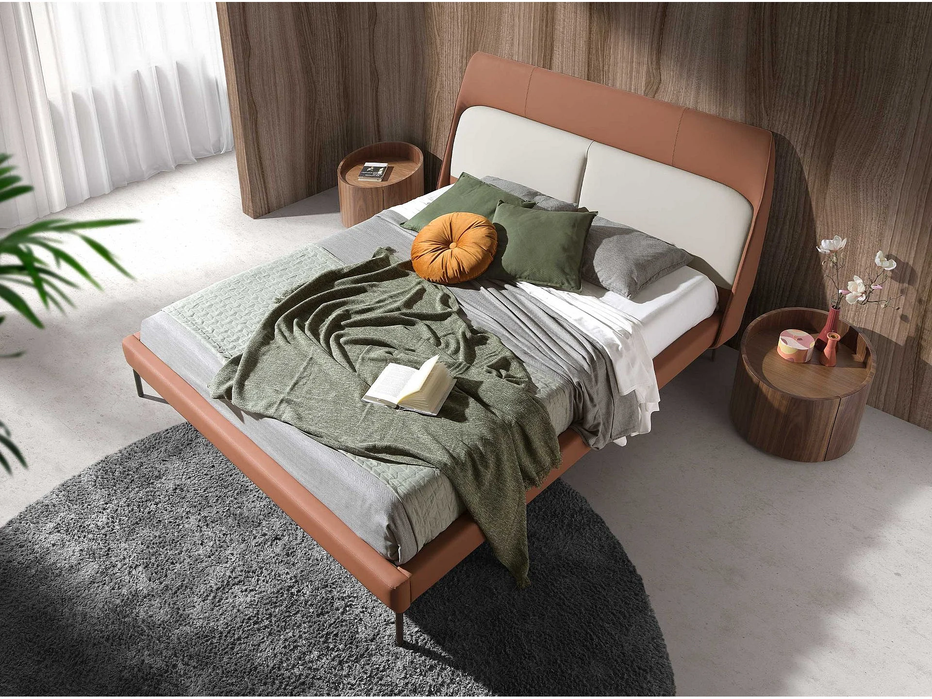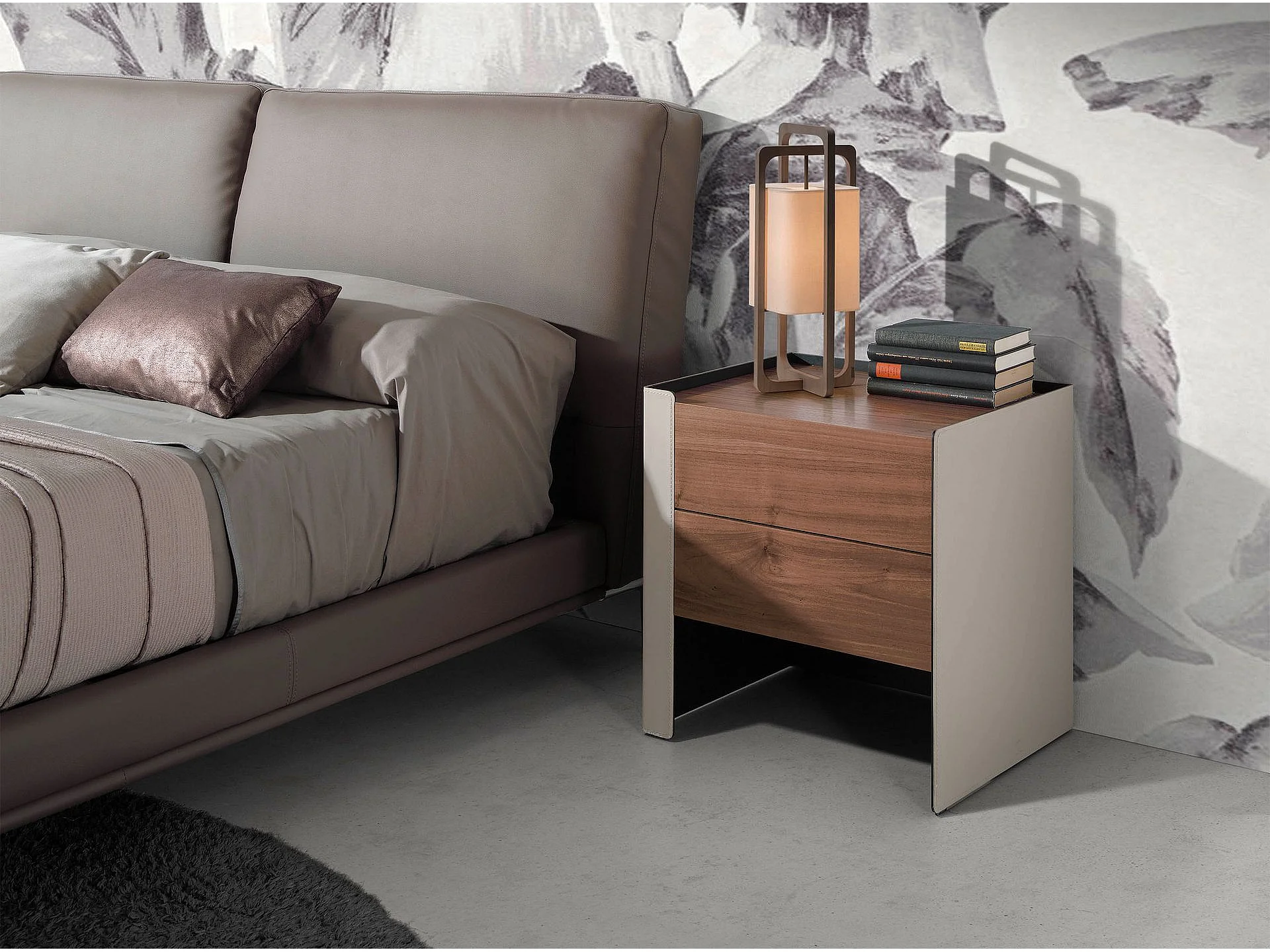 Nachtkastje van ecoleder, walnoot en zwart staal 7118 ANGEL CERDA