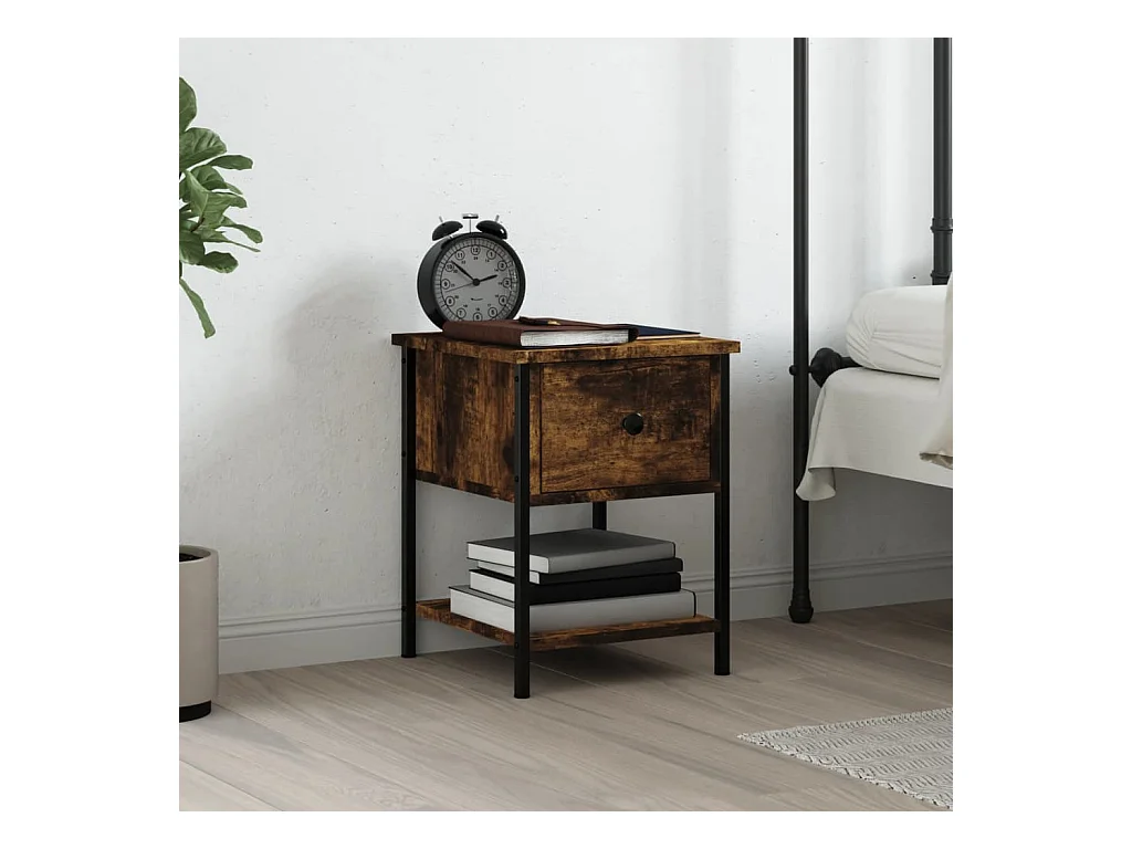 Nachtkastje van gerookt eikenhout 34x35,5x45 cm bewerkt hout