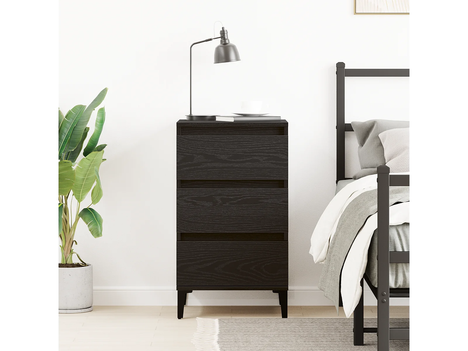 Nachtkastje met metalen poten Zwart Eiken 40x35x69 cm