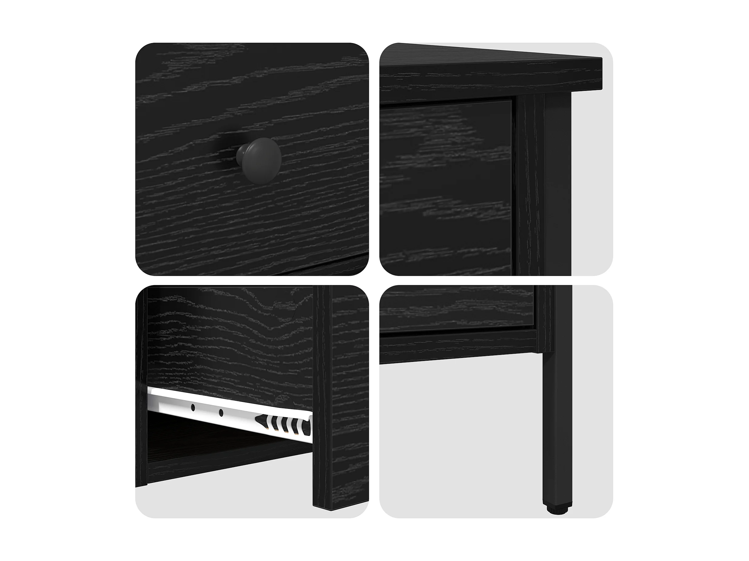 Nachtkastje van zwart eikenhout 40x35x50 cm, gemaakt van bewerkt hout