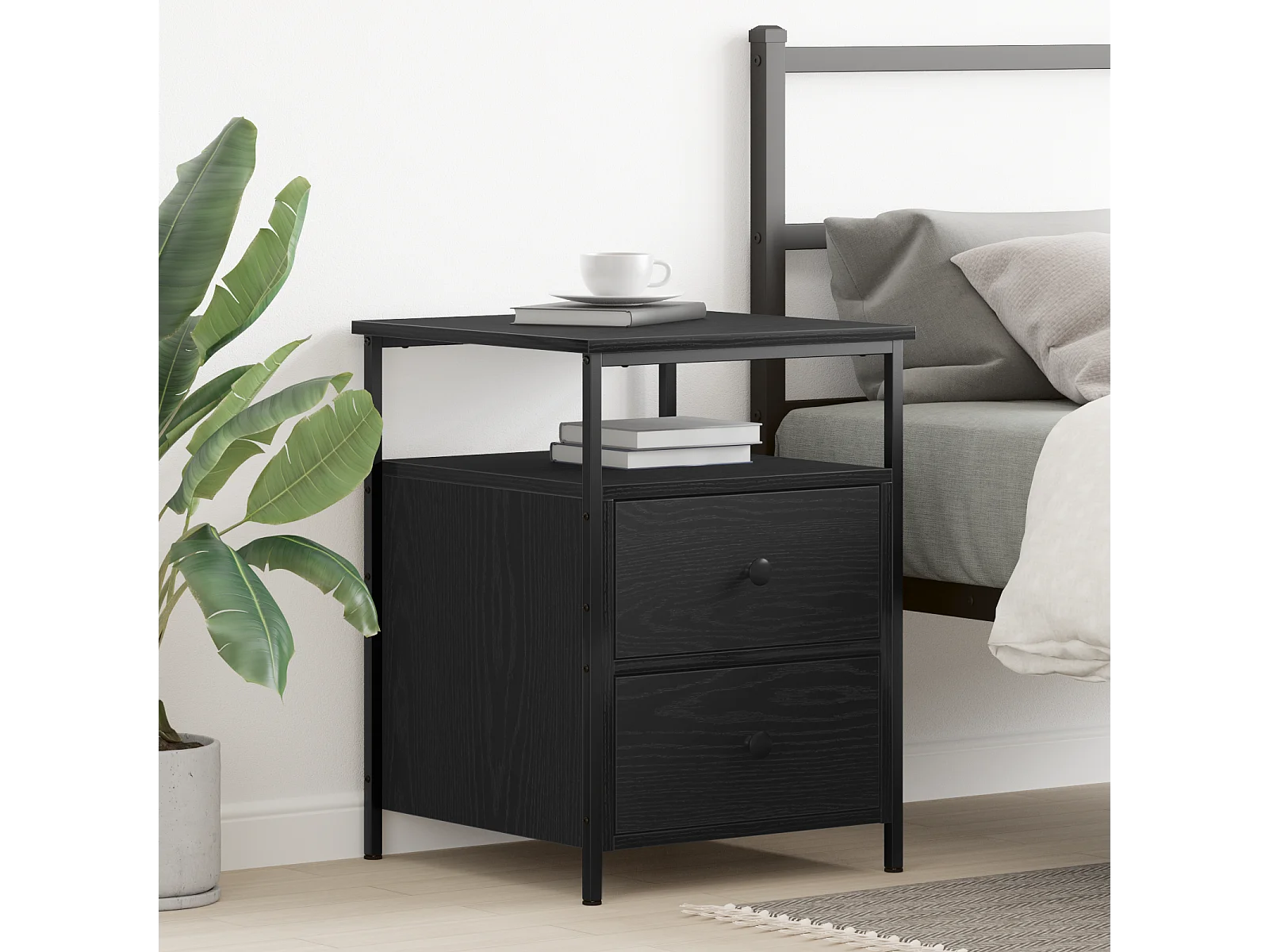 Nachtkastje 40x34,5x60 cm bewerkt hout en metaal zwart