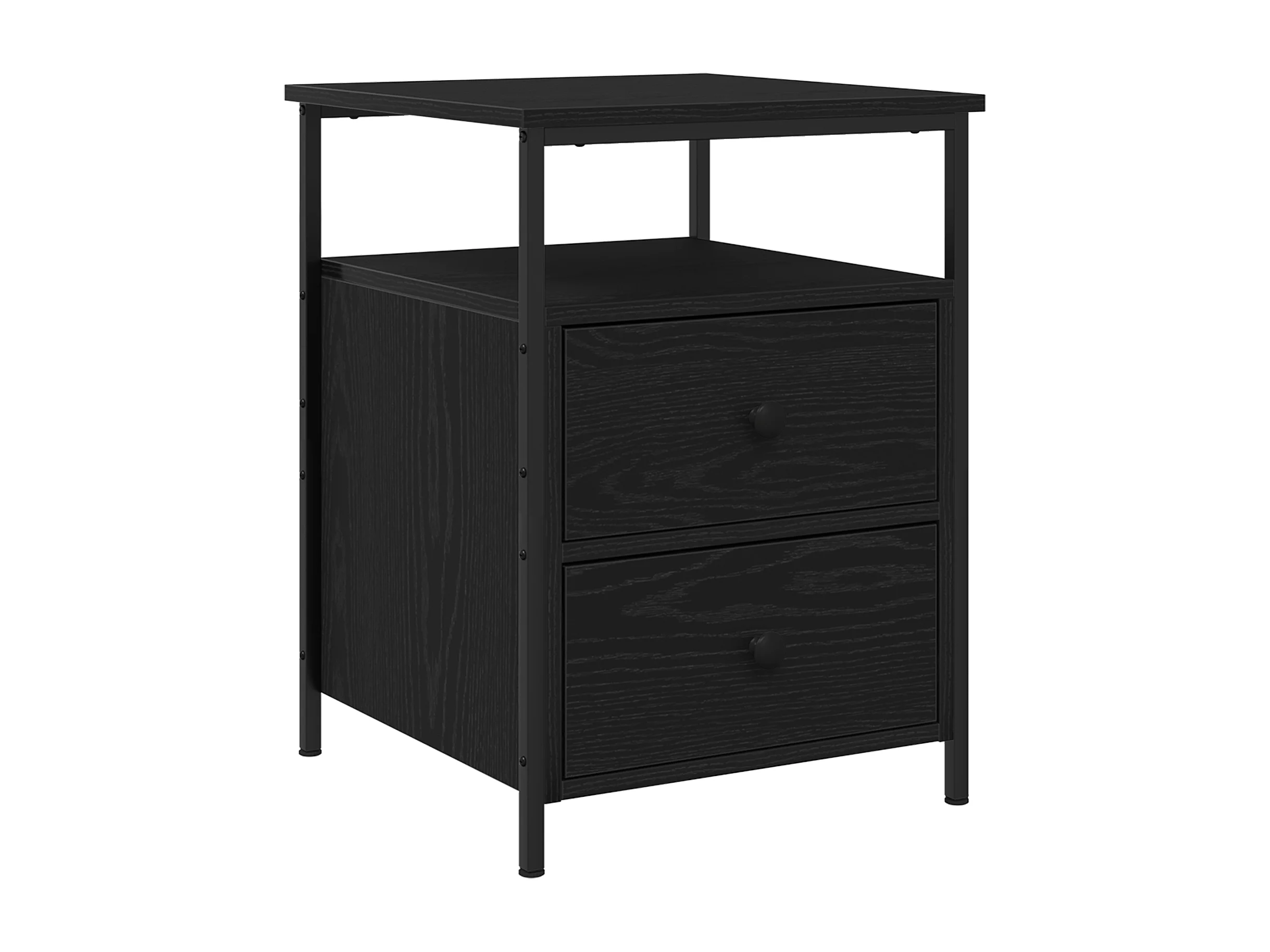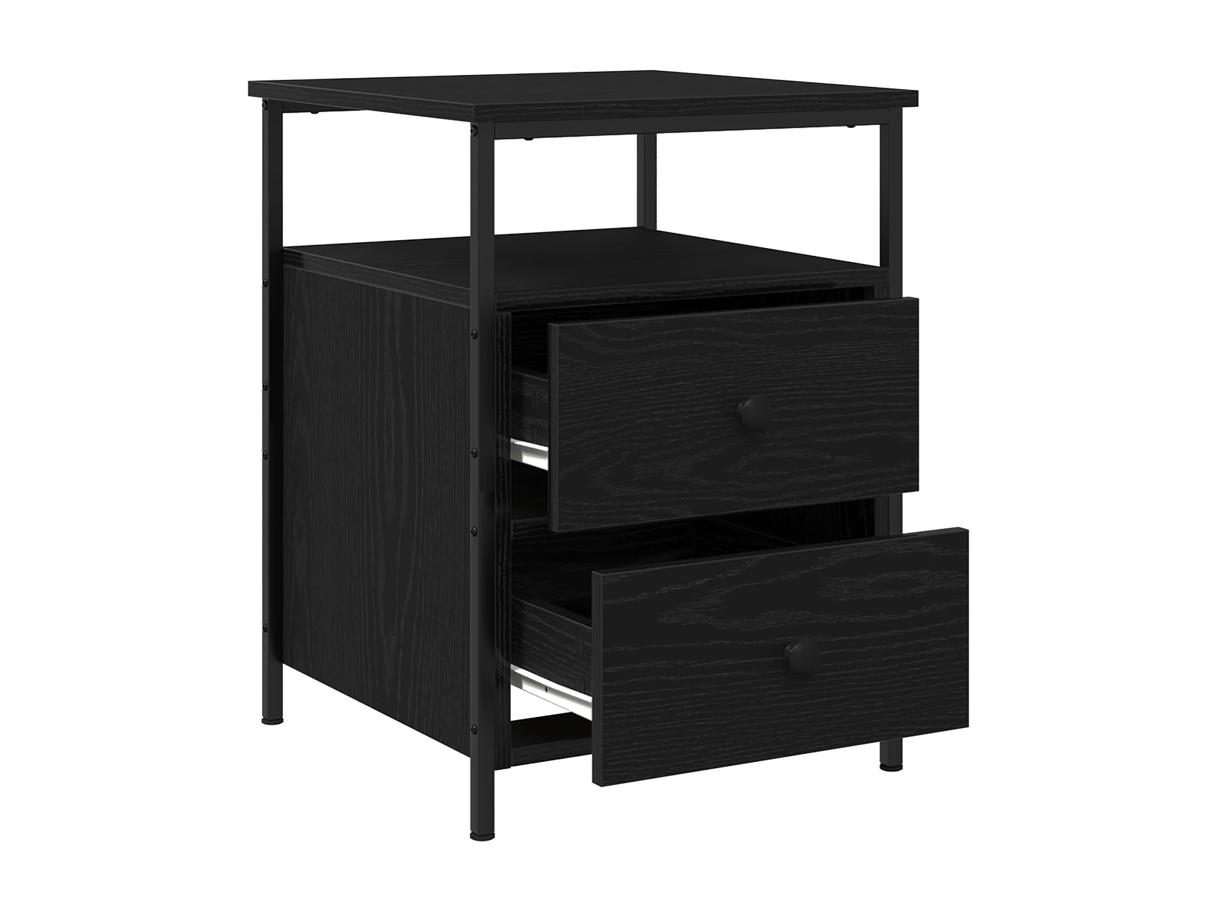 Nachtkastje van zwart eikenhout 44x45x60 cm, bewerkt hout en staal
