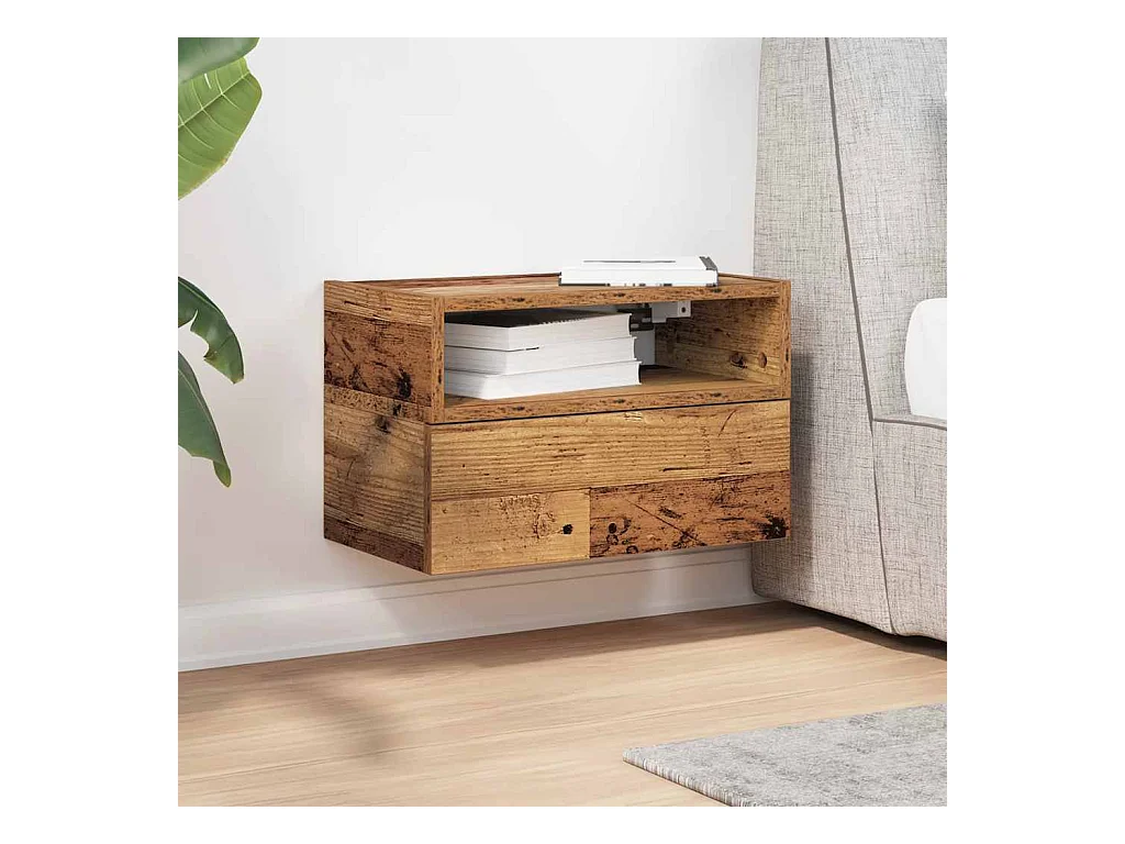 Nachtkastje wandgemonteerd 45x26x28,5 cm oud houtkleurig