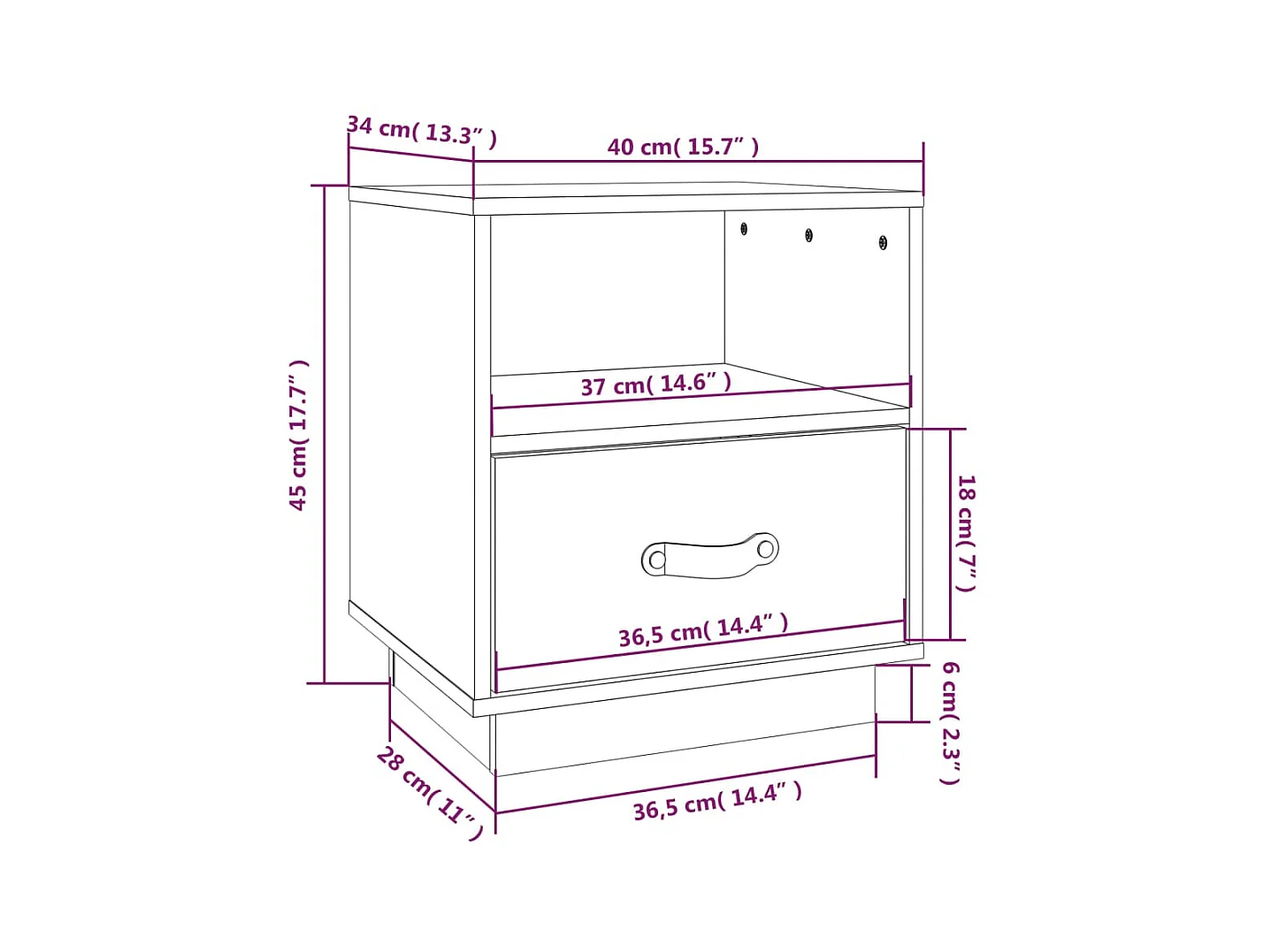 Nachtkastje 40x34x45 cm massief grenenhout wit